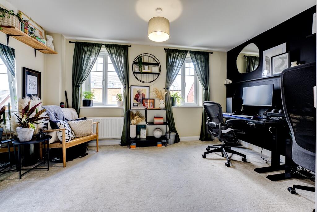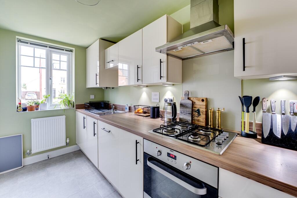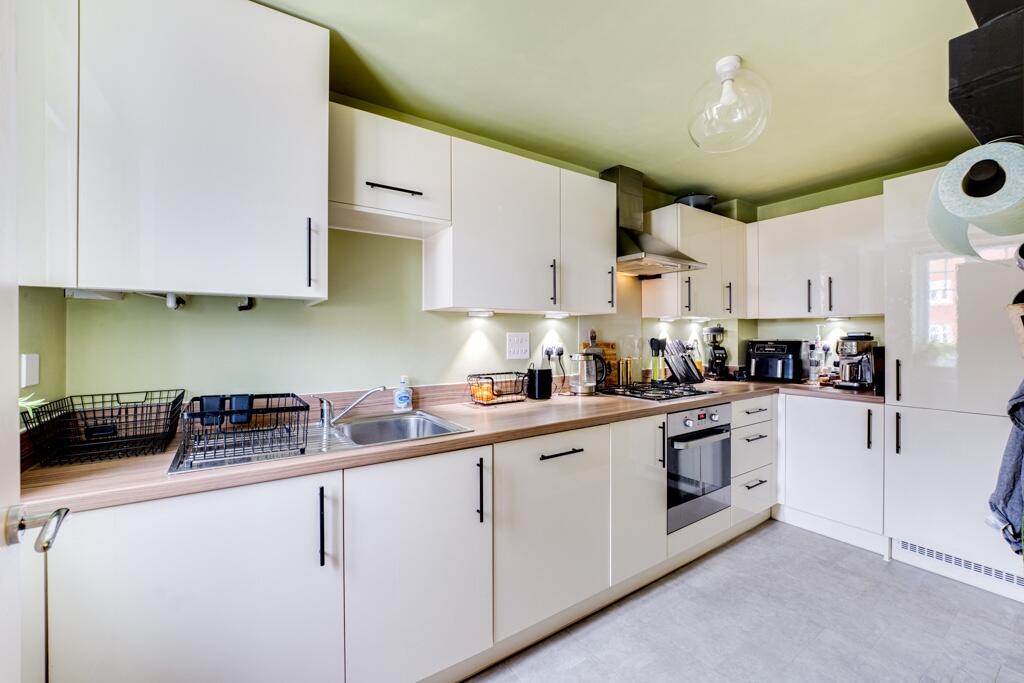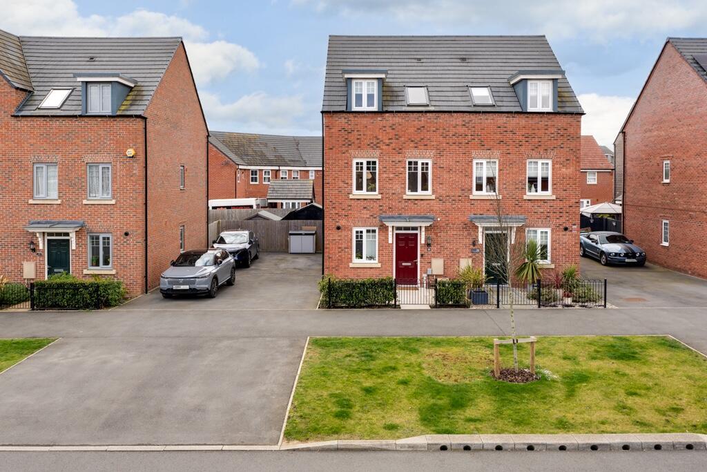 Located in the popular Hanwood Park development in Kettering, this modern three-bedroom, three-storey townhouse on Belton Road offers spacious and versatile living accommodation. The ground floor features a well-equipped kitchen at the front of the property, while the open-plan lounge and dining