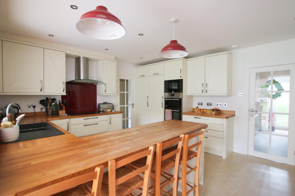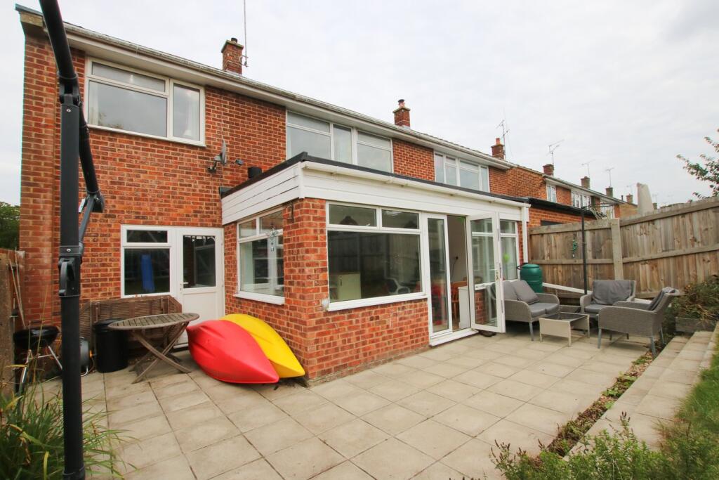The property appears to be in good condition, with a recently modernised kitchen and conservatory extension. The images show a well-maintained interior and exterior. The garden is of a reasonable size, suitable for a family. The property benefits from off-street parking and a garage.