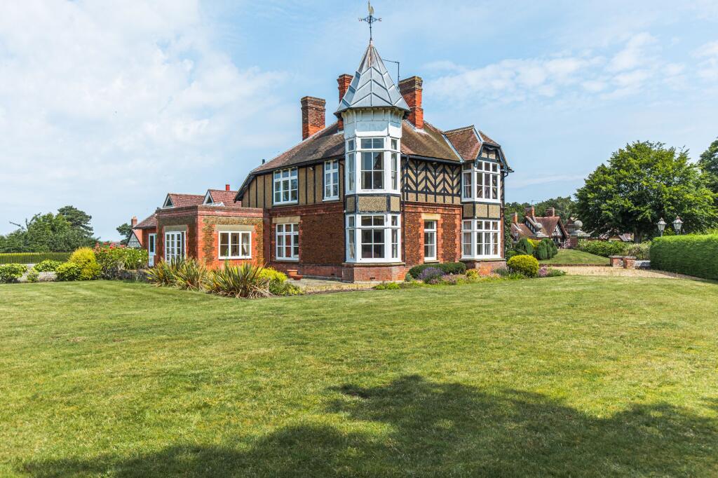 This property in Wolferton, Dersingham, is a substantial detached house with considerable charm and character. The architecture is distinctive, suggestive of a period property. The exterior is primarily brick, which, given the images, appears well-maintained. The grounds are extensive, featuring a sizable lawn and gardens, providing significant privacy and outdoor space. The interior is well-lit with a large number of windows, and provides glimpses into both traditional and more modern features and finishes. There are several rooms visible, suggesting ample living space. The kitchen features traditional, and potentially dated, cabinetry, but a range-style cooker, an attractive addition. Overall the images suggest a property that would suit a discerning buyer looking for a large, characterful family home in a quiet, rural location. The proximity to the town of King’s Lynn provides convenient access to urban amenities which will appeal to buyers seeking a balance of country living with ease of access to town life. The lack of explicit details regarding property square footage and condition of nearby properties makes providing a definitive analysis on the pricing difficult, however, the given list price may require negotiation depending on the buyer and market conditions.