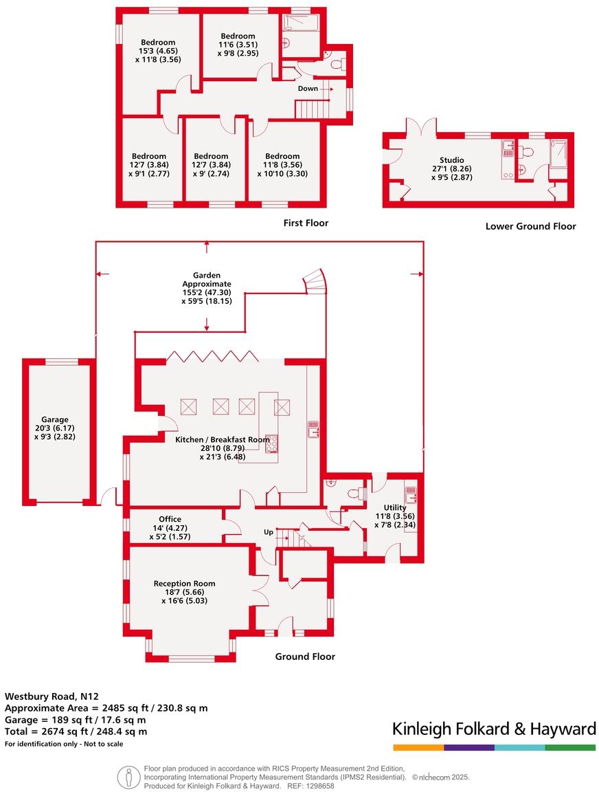 A rarely available and tastefully presented five bedroom detached family home with stunning rear extension and garage , set on a wide plot, boasting a self contained studio with separate entrance, offering 2485 sq ft of living space and an impressive 155 ft mature garden.