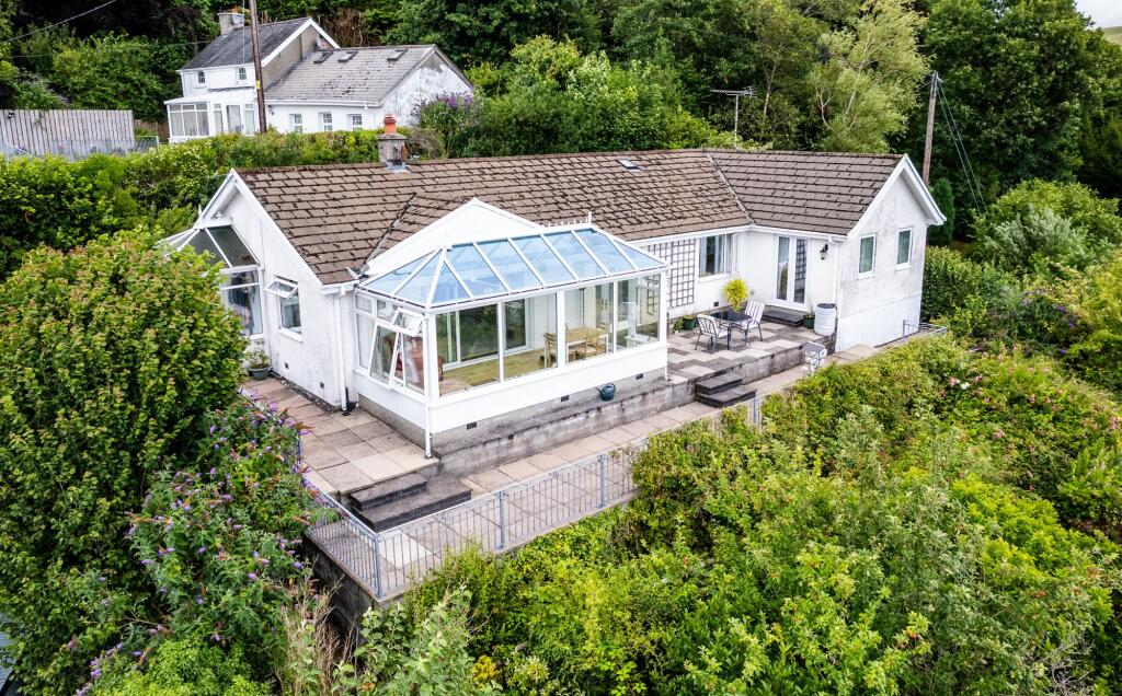 Elevated 4-bed bungalow with panoramic views, AGA kitchen, conservatory, gardens, sunny terrace, and parking. Peaceful hillside setting near Aberystwyth. Offers in Excess of £350,000.