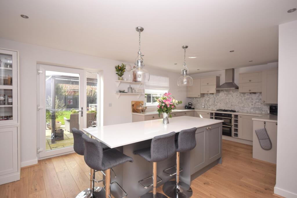 This four-bedroom, three-bathroom detached house in Legbourne, Lincolnshire, is presented in seemingly pristine condition. The property boasts a modern and stylish interior, evident in the high-quality kitchen and bathrooms shown in the photographs. The rooms appear spacious and well-lit. The home also includes a garden area, suggesting a family-friendly environment.