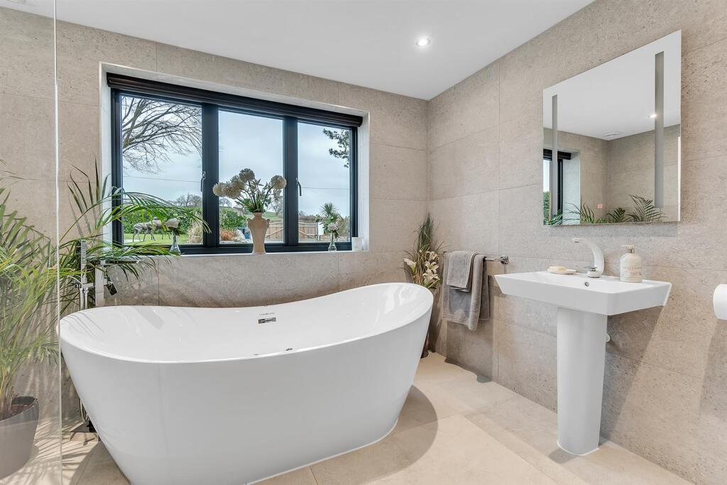 The property includes extensive grounds. The substantial plot size provides ample space for outdoor activities and enjoyment. The presence of a large garden, patio areas, and outbuildings enhances its appeal and functionality.