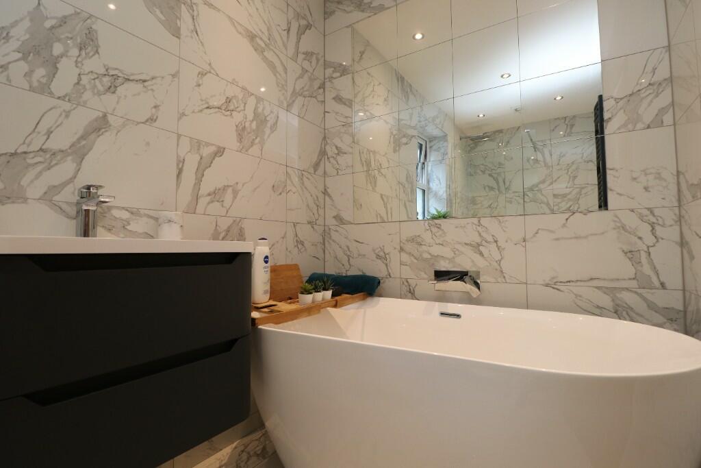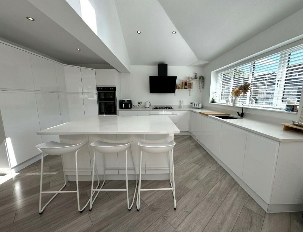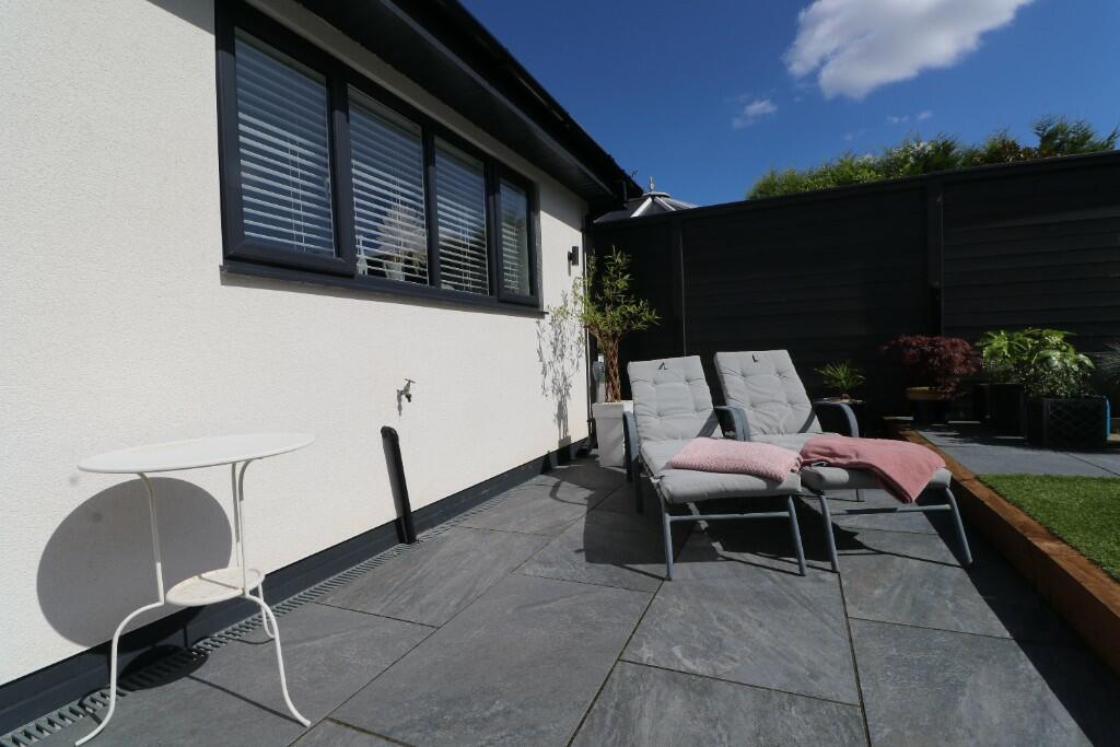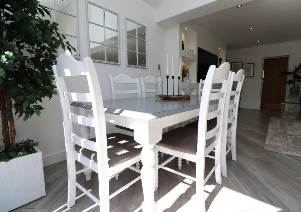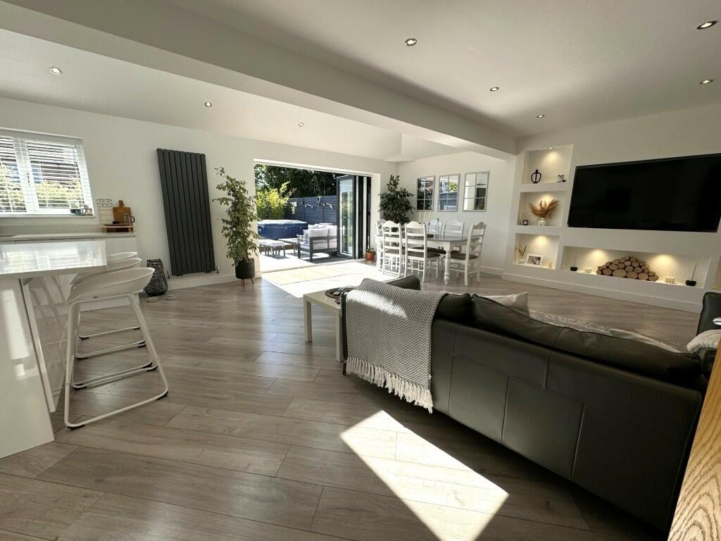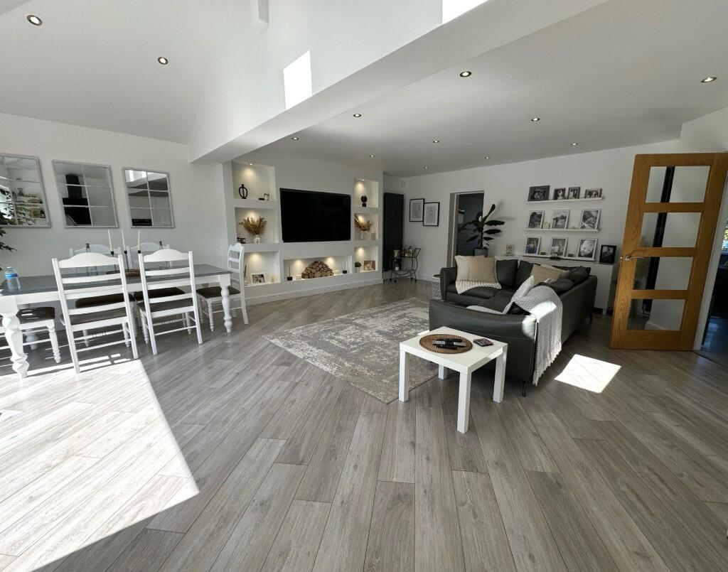 This three-bedroom detached bungalow situated on Welford Avenue in Lowton, Wigan, presents itself as a desirable property in the Greater Manchester area. The property appears to have been recently renovated or fully refurbished, showcasing a modern, stylish interior with an updated kitchen and bathroom. The photos display a bright, spacious open-plan living area, which flows seamlessly into a well-maintained rear garden that includes a patio area, artificial grass, and hot tub. The location in Lowton East offers proximity to a range of local amenities including Lowton St Luke’s Village Centre, schools, and transport links. While the exact plot size isn’t provided, the garden area seems generous for a bungalow in this location. The list price of £399,950 seems relatively competitive when considering the recent enhancements made to the property, but further information, such as precise dimensions and a definitive price per square foot comparison, would provide a more conclusive assessment of the value. The property’s excellent condition, combined with its convenient location and appealing outdoor space, makes it a strong contender within the Lowton property market. The property is likely to appeal to families looking for a modern, well-maintained home in a family-friendly neighbourhood.