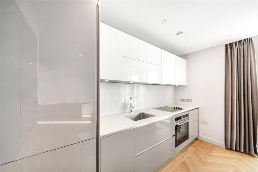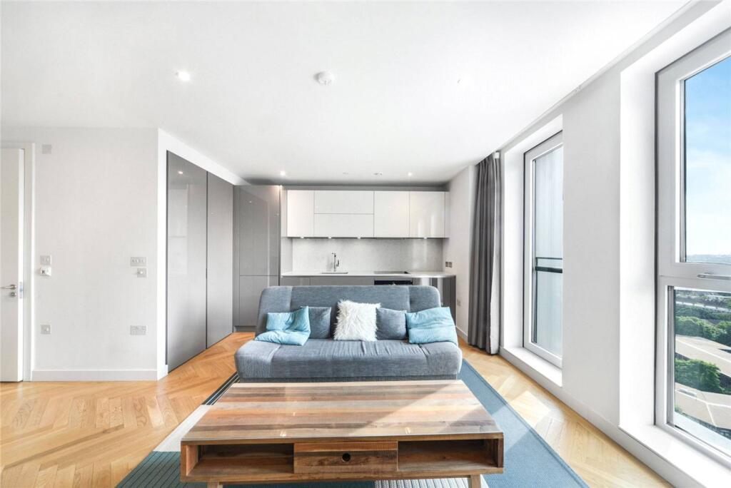 SHORT LET. Set on the 14th floor in a modern development, this studio flat boasts stylish interiors including a large studio room with contemporary kitchen and a sleek shower room.