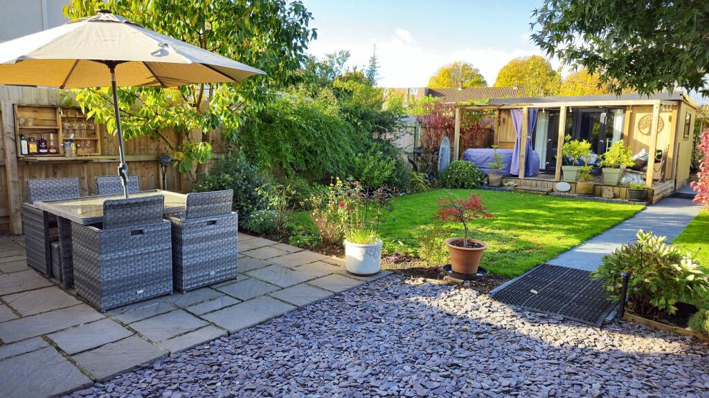 Modern two-bedroom semi-detached house with en-suite, two bathrooms, solar panels, stylish kitchen, summer house, and bright lounge. Ideal for couples, first-time buyers, or small families.