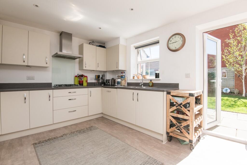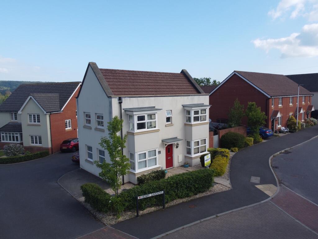The property located in Henry Gardens, Ottery St Mary, East Devon is a 3 bedroom, 2 bathroom detached house with 632 sqft of living space and a 632 sqft plot size. The asking price is £385,000.