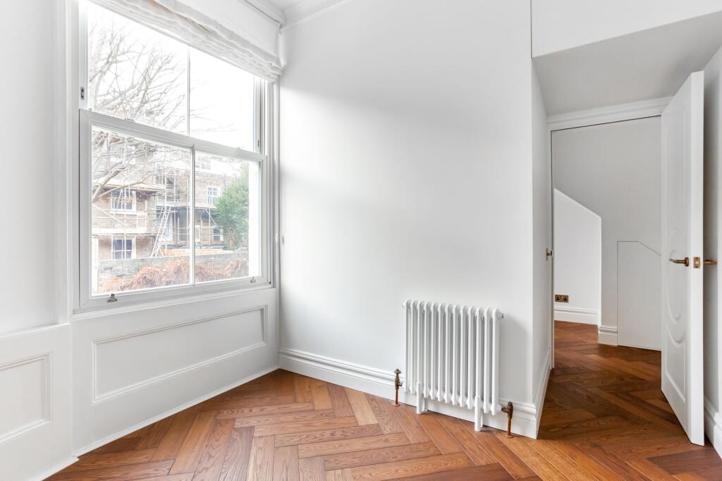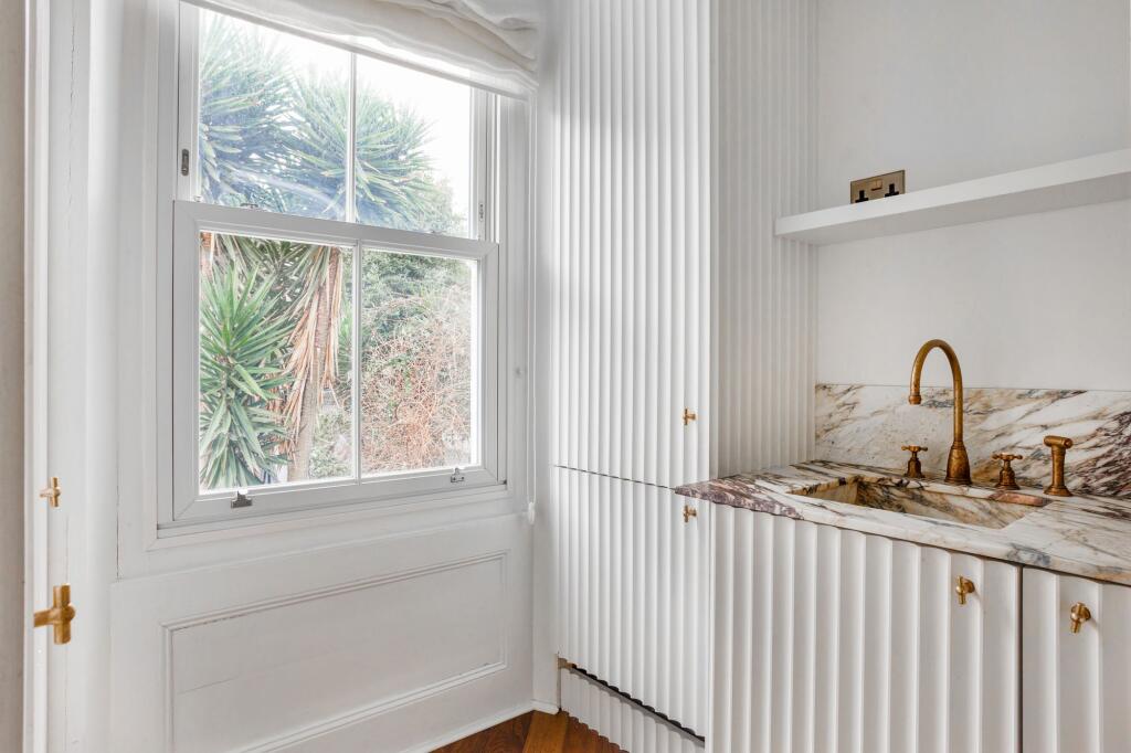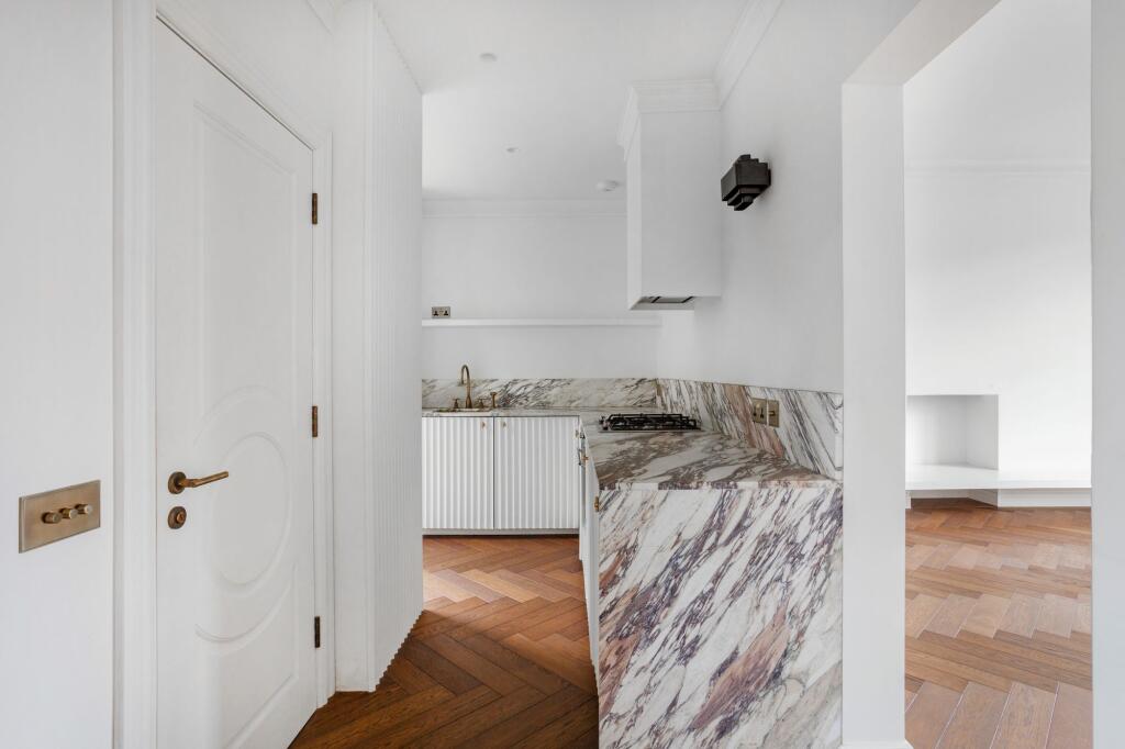 An exceptional two bedroom apartment set on the upper ground floor of a period property with a bespoke kitchen with marble worktop, parquet flooring throughout, high ceilings and lots of natural light