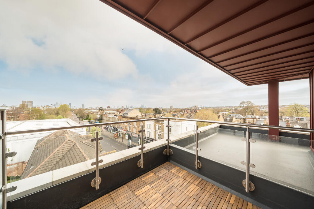 Elegant one-bedroom new build apartment with private terrace showcasing views of The Shard and London skyline. Contemporary interiors, sleek finishes, and excellent amenities near Brixton, Herne Hill, and Brockwell Park within an exclusive gated development.