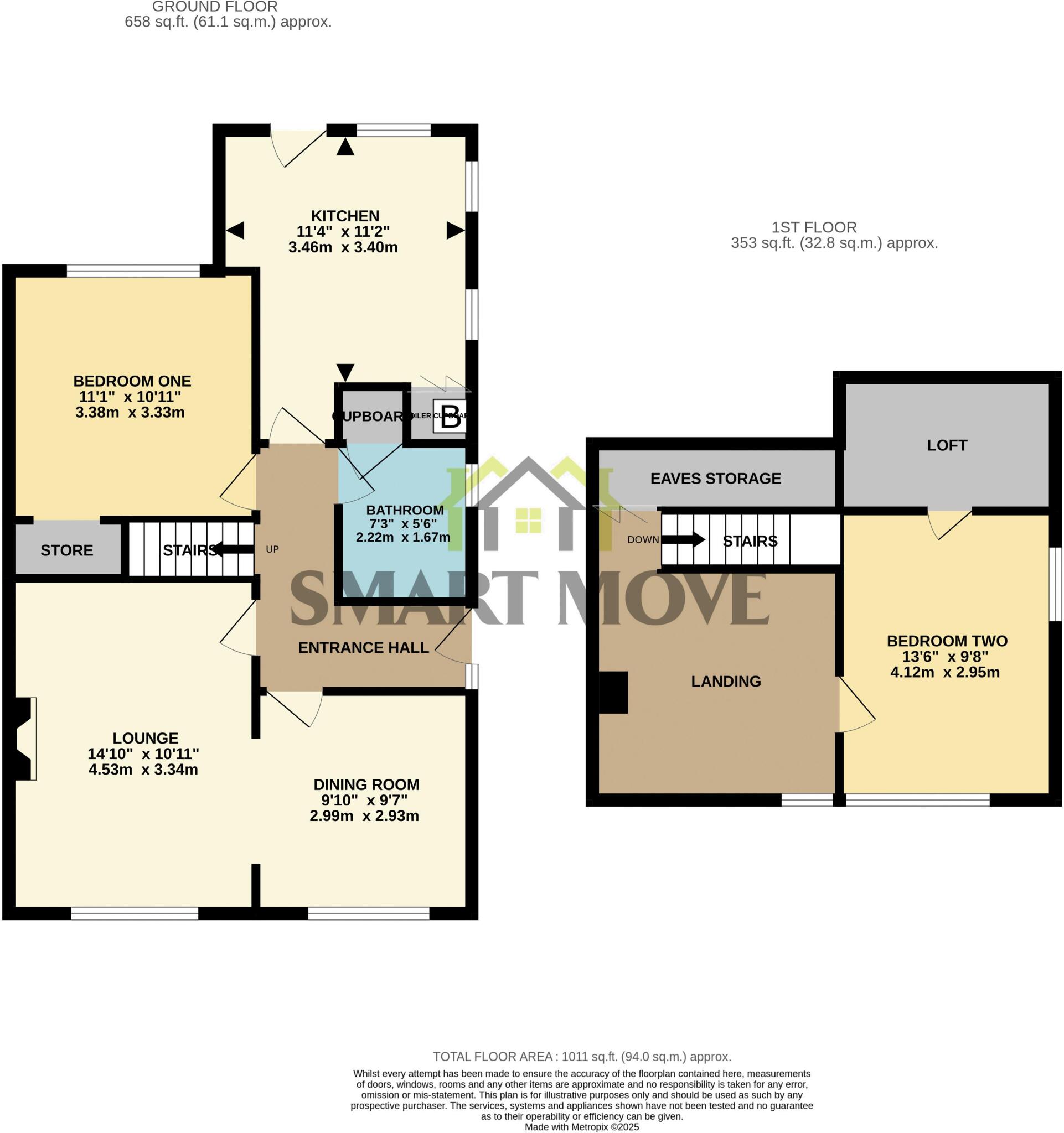 The plot size is 1011 sqft, which is relatively small, but sufficient for a property of this type.