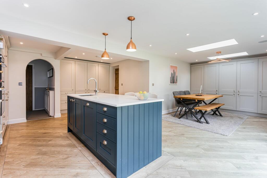 Guide price £700,000 - £725,000 A stunning and extended three bedroom detached family home, which is situated in a within a semi rural location, with views over open fields. The property offers versatile living space totalling 1,518 sq ft and also benefits from driveway parking and a private r...