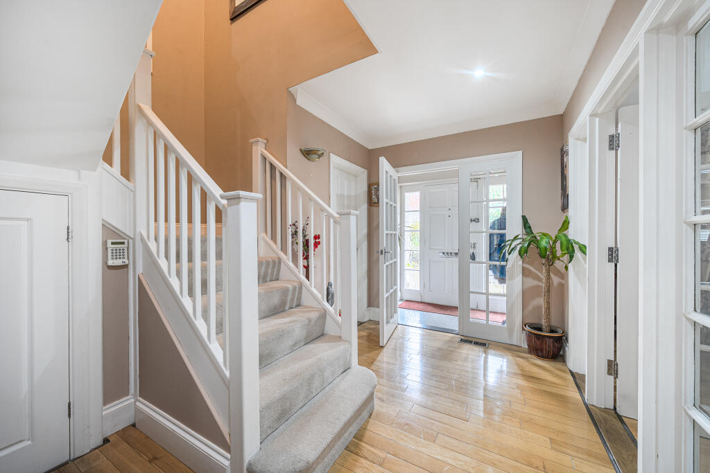 A spacious and well-proportioned five bedroom neo-Georgian style house designed for contemporary living with versatile accommodation and established gardens in the popular southern part of Tunbridge Wells close to the High Street and Pantiles