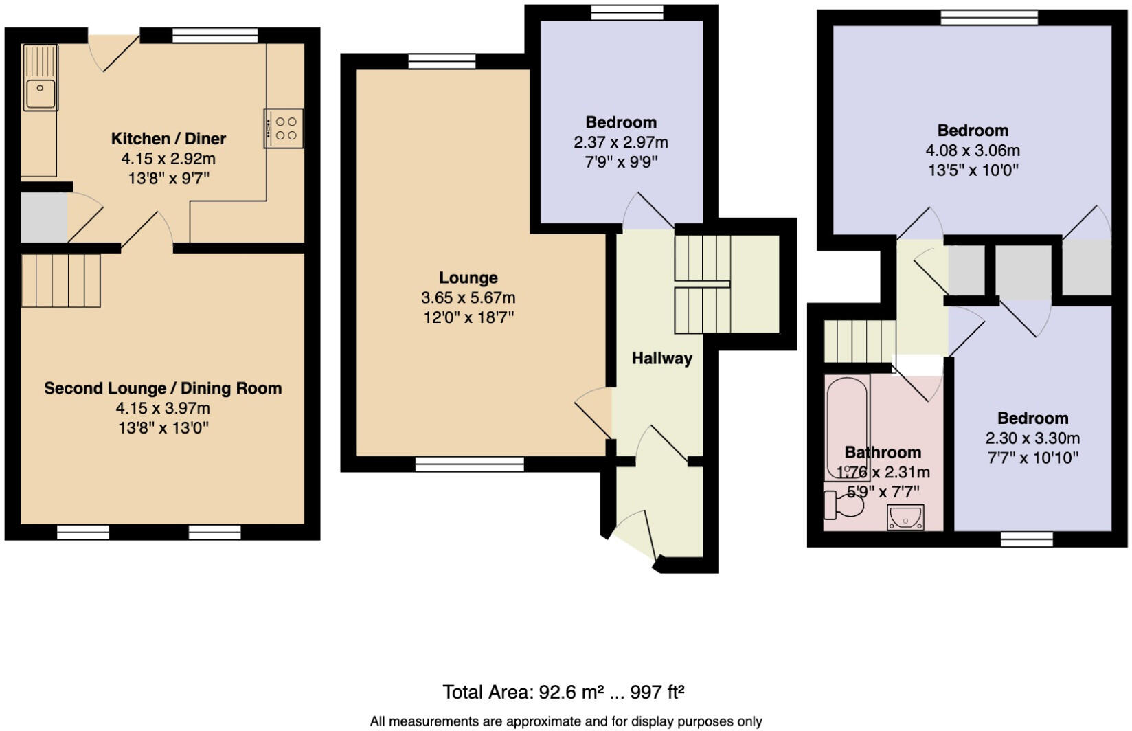 Spacious three-bedroom Canadian-style home with no chain. Flexible three-level layout including two lounges, kitchen diner, and large rear garden. Off-street parking, excellent potential to update. A fantastic opportunity in a sought-after location.