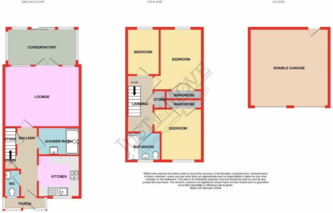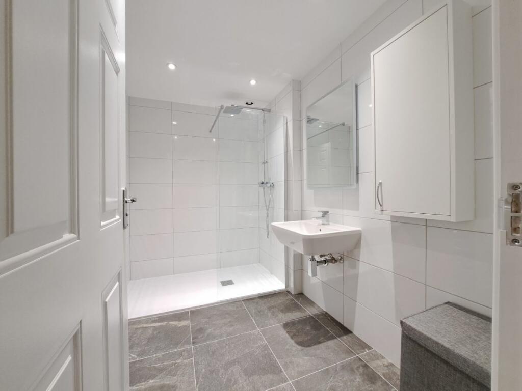 However, other aspects of the property appear to require some attention. The bedrooms shown in the photos feature older décor, carpets and furniture, suggesting potential for modernization. The second bathroom looks older and would likely benefit from renovations to bring it up to the standard of the modernized shower room. Additionally, the garden needs some landscaping to reach its full potential. The outside space however, does provide a small area for relaxation and includes a double garage which is a positive aspect of the property.