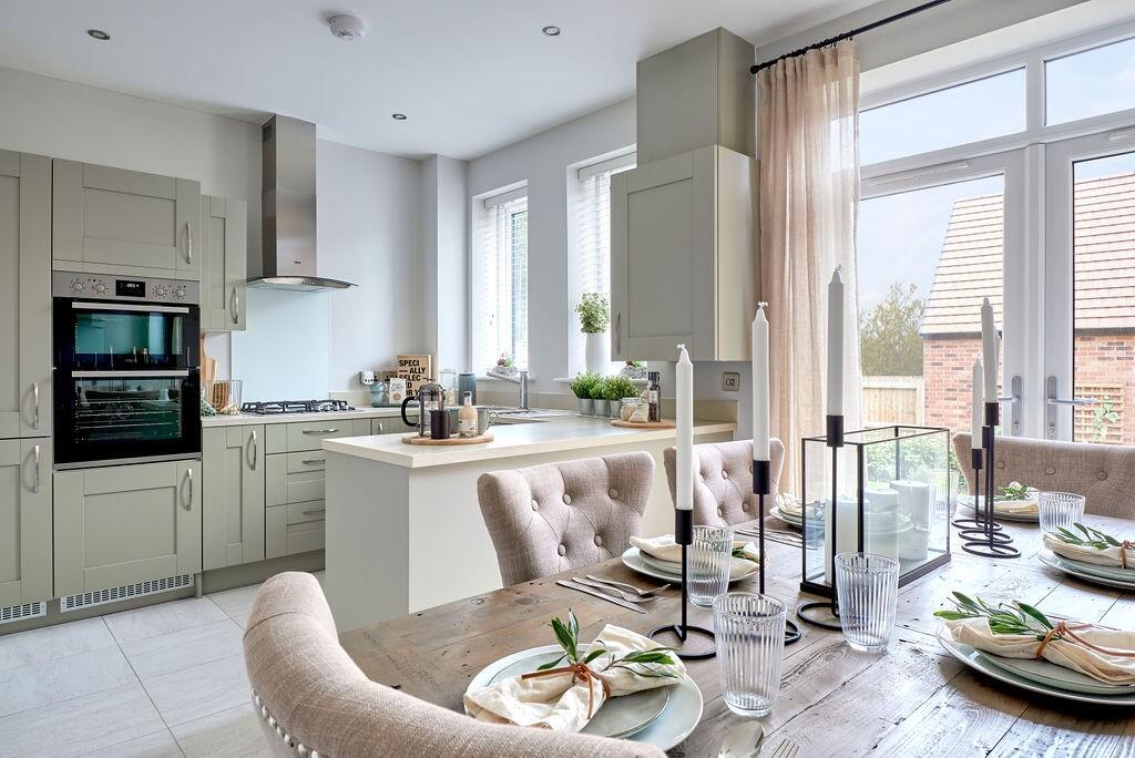 The Sandringham is a striking four-bedroom semi-detached townhouse available through Rent to Buy, offering flexible family living across three floors with an open-plan kitchen/dining area, separate living/dining room, and utility space.