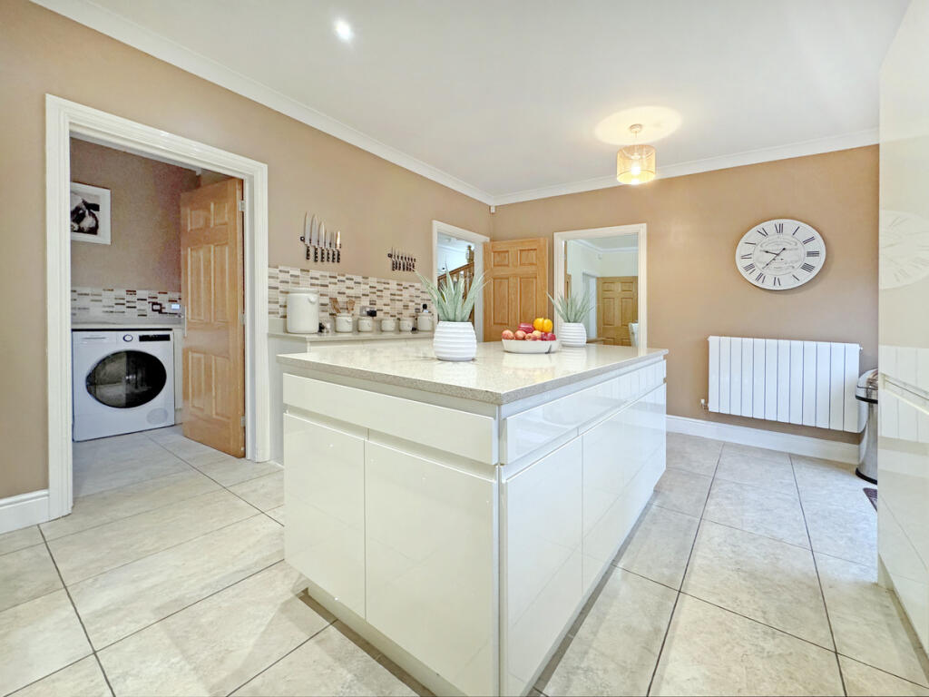 This is a detached property on Snowdrop Road, Hartlepool, presented by Collier Estates. The house has five bedrooms and three bathrooms, making it suitable for a large family. The interior is modern and well-maintained, with a recently updated kitchen and bathrooms. The property also benefits from a garden with a patio area and a garage. Nearby schools and transportation links add to the appeal. While the square footage is not provided, the asking price of £495,000 appears reasonable given the location and condition of the property.