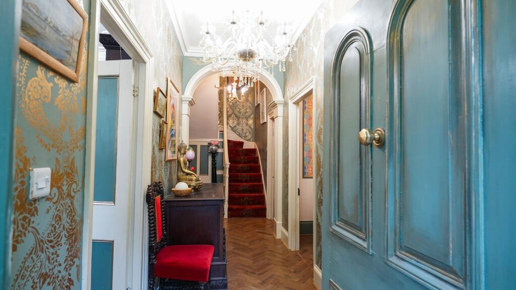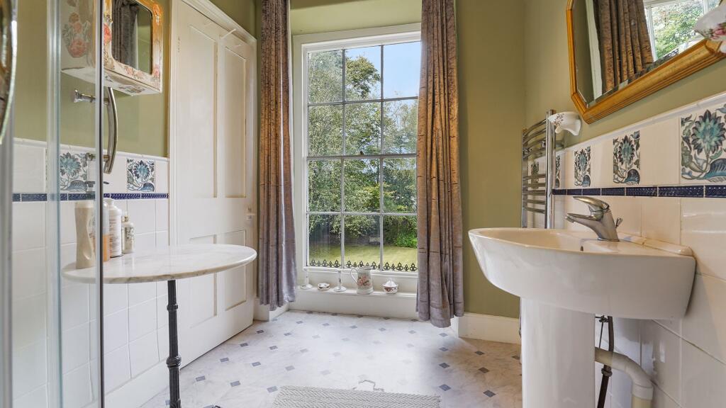 This is a detached period property located in a rural setting in West Wales. The house has five bedrooms and two bathrooms, with a total square footage of 1,850. The property includes a large garden. While generally well-maintained, some aspects of the interior could benefit from modernisation. The location offers a tranquil lifestyle but is relatively isolated. The asking price is £695,000.