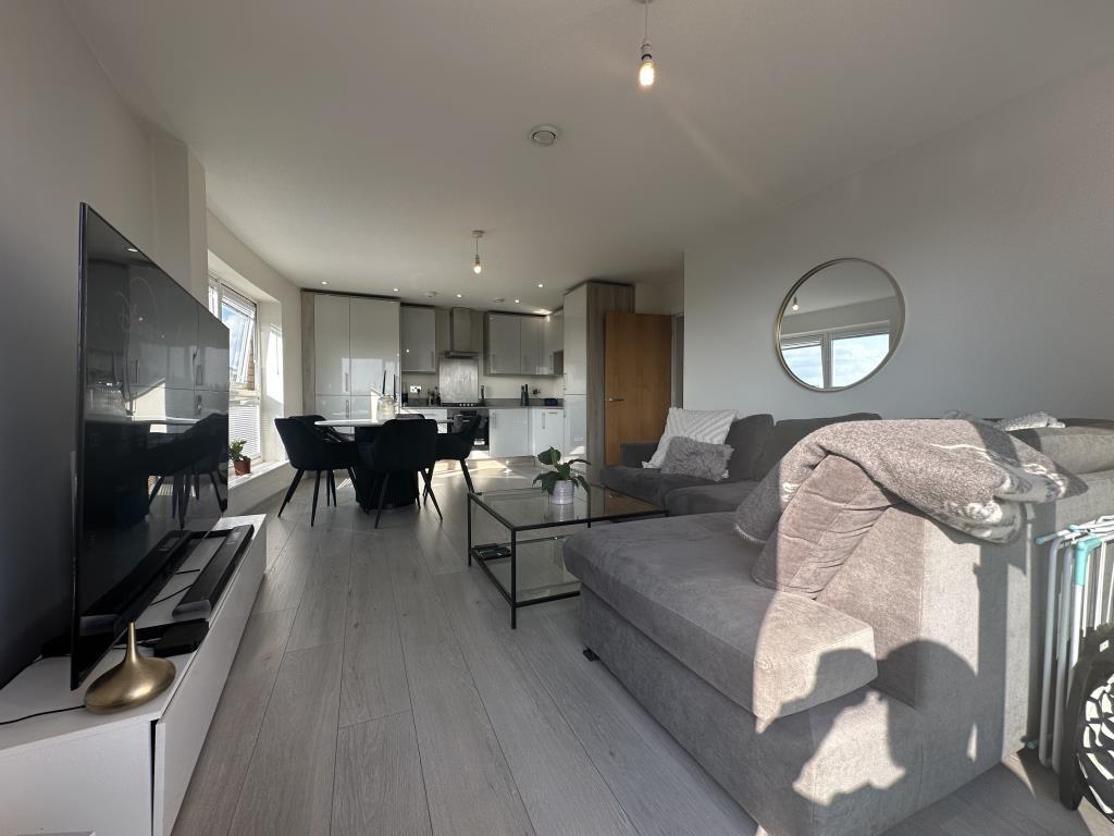 A modern two bedroom apartment benefiting from open plan kitchen/living room, two double bedrooms, main bathroom, parking, balcony and views of Windsor Castle. Situated near Slough mainline station and Elizabeth Line. The property is ready to move into from the end of July.