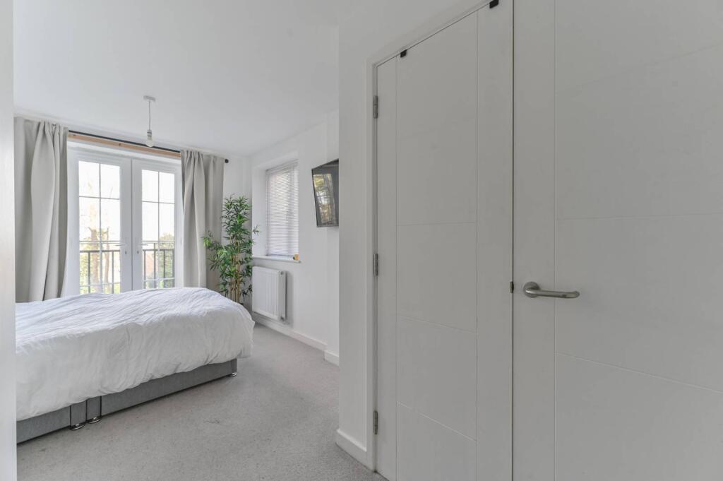SHORT LET. Set in a beautiful newly built block, this stylish 1 bedroom flat boasts contemporary interiors, featuring spacious reception room, fitted open-plan kitchen, Juliette balconies and access to a secluded communal garden.