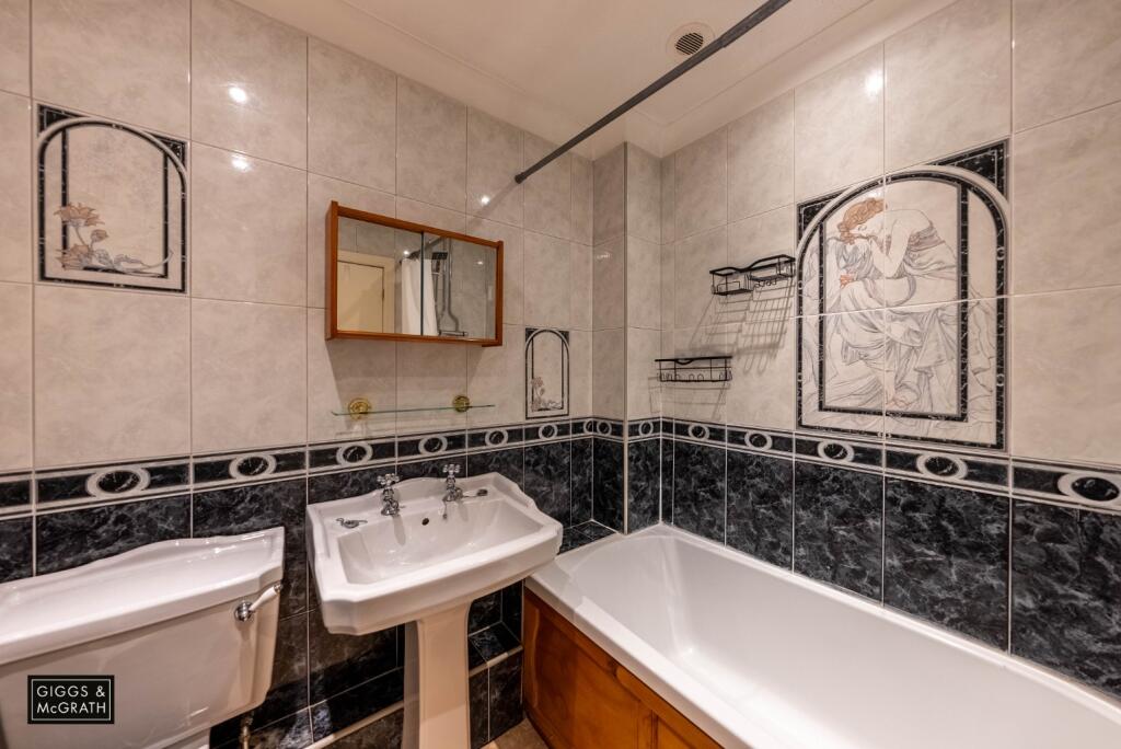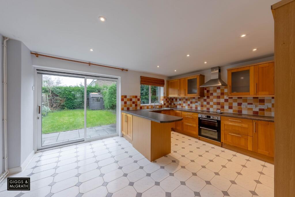 The property itself appears well-maintained from the exterior, though the interior suggests some modernisation would enhance its appeal. The kitchen and bathrooms exhibit a dated style, which could be updated to increase the property’s value. The layout includes a spacious living area and a garden of moderate size with a shed, providing adequate outdoor space.