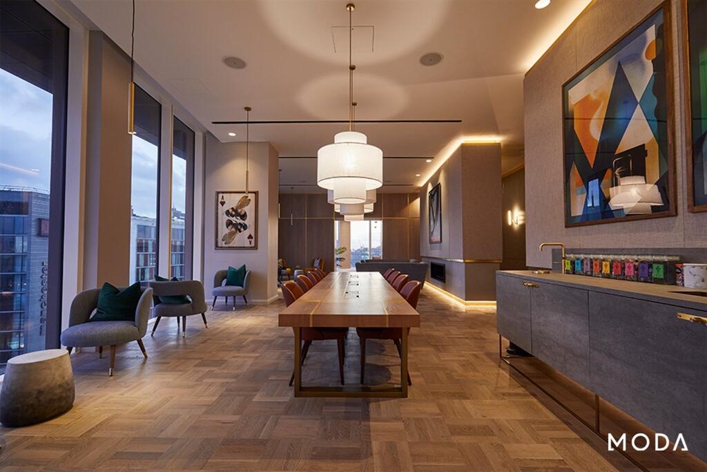 35 storeys with epic city views and state-of-the-art amenities including rooftop sports pitch, 24/7 residents gym, cinema room, private dining room and WFH spaces. 250MPS Wi-Fi included, 24/7 concierge, residents' events, wellbeing.