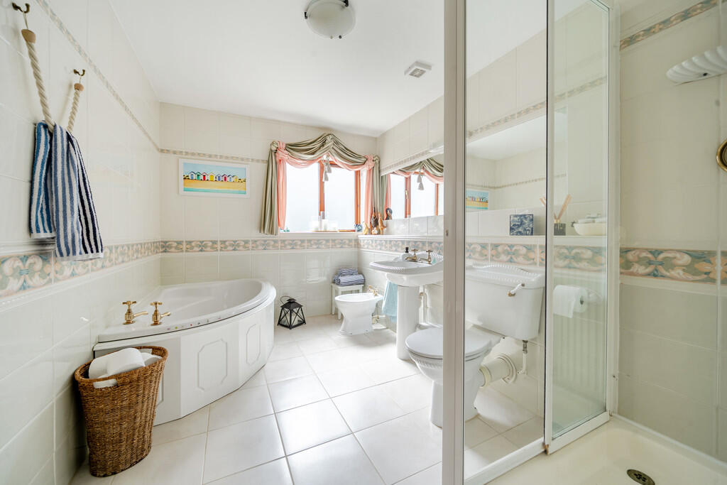 A wonderful large family home in a delightful position. - Reception hall, study/bedroom 4, striking lounge, dining room, kitchen with breakfast area, utility room, cloakroom, sitting room. - Three bedrooms and three bathrooms (two ensuites). - Double garage. - In all about 2,523 sqft. - Charmin...