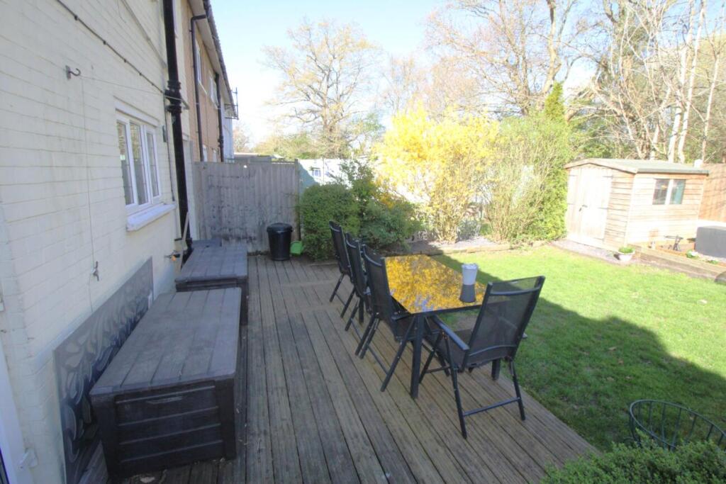 Based on the images provided, the property appears to be in good condition and well-maintained. The interior is modern and updated, with a recently fitted kitchen and bathrooms. There is no visible evidence of significant repairs or renovations needed. The property benefits from a good-sized garden with a patio area and shed.