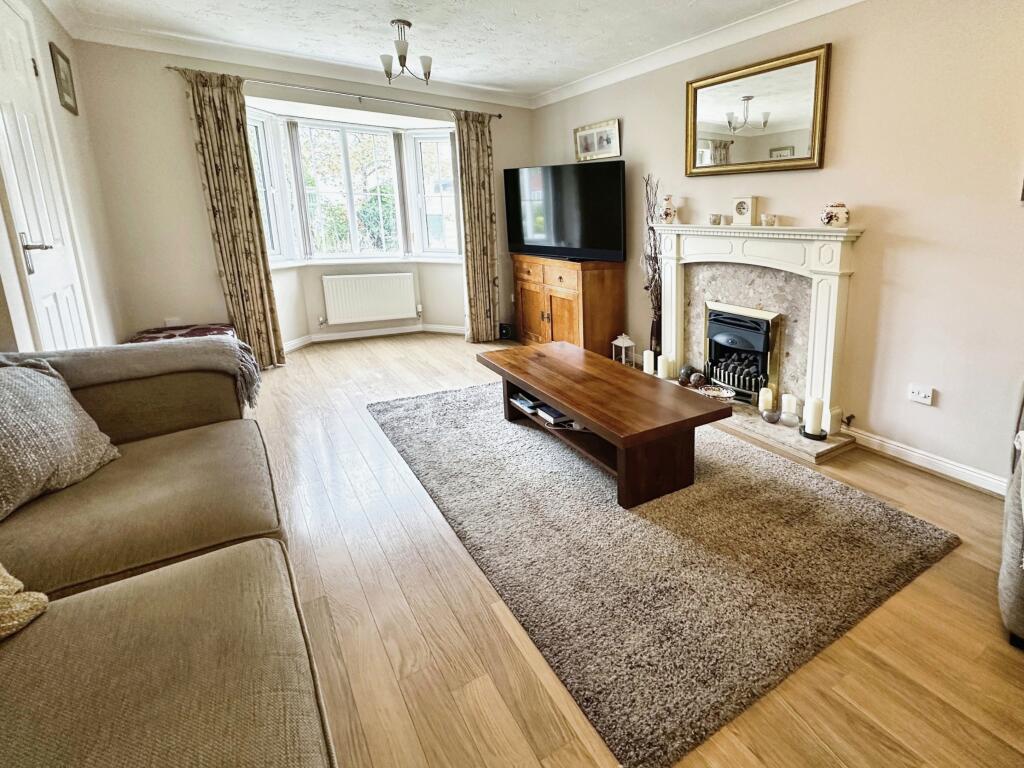 The property is a four-bedroom detached house located in the desirable Brizlincote Valley estate in Burton-on-Trent. The estate is family-friendly, with several nearby schools and convenient access to public transportation via Burton-on-Trent train station. The property seems to be in good condition, with a well-maintained interior, updated kitchen and bathrooms, a conservatory, and a garden. While the exact square footage is unknown, the list price of £355,000 appears reasonable compared to similar properties in the area, though a precise price-per-square-foot comparison is impossible without this data.