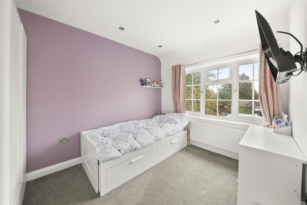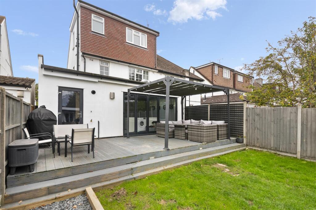 This is a five-bedroom semi-detached house in Iver, Buckinghamshire. The property is in good condition and has a modern kitchen and bathrooms. It also has a good-sized garden with a lawn and a patio area. The property is located close to schools and transport links. The property benefits from a modern interior, a utility room, ensuite, garage and patio area.