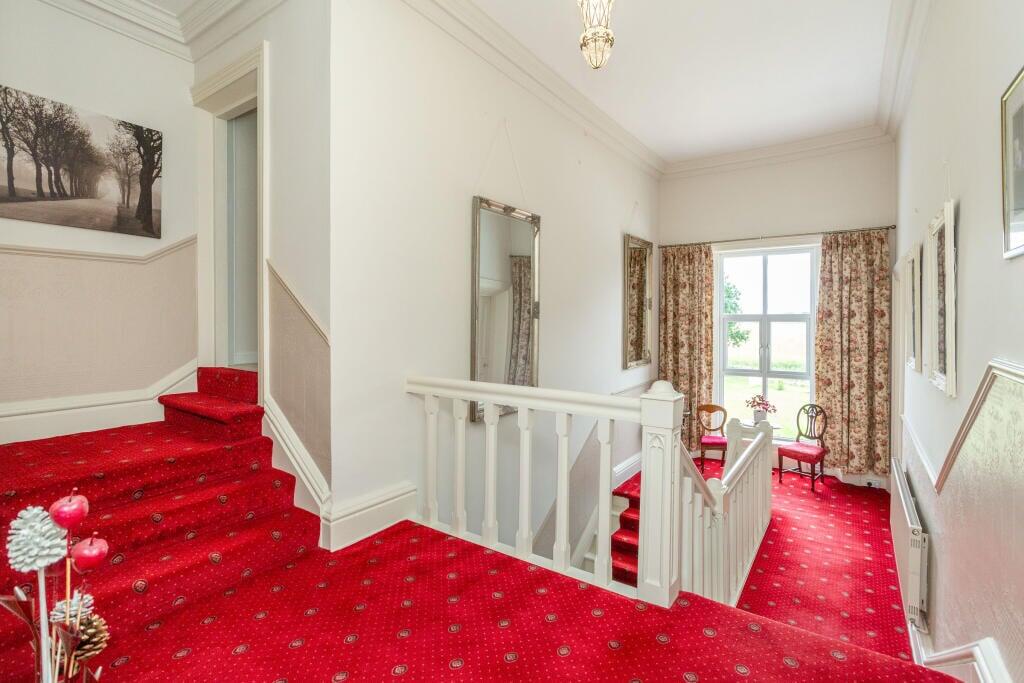 Hall Garth is a substantial detached property located in the village of Osgodby, near Selby. The house features five bedrooms and five bathrooms, making it suitable for a large family. The property is in good condition, with a mix of modern and traditional elements. It benefits from a large plot size, including a well-maintained garden, several outbuildings, and ample parking. The location offers a balance between rural living and accessibility to nearby towns and amenities. The property is well-presented and offers a range of desirable features, making it an attractive option for potential buyers.