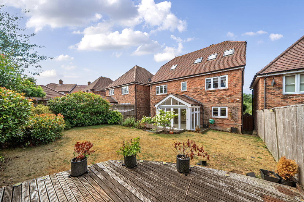 A stunning five bedroom detached house located on a popular development with four bathrooms, pleasant rear garden, garage and excellent views from the front of the house.
