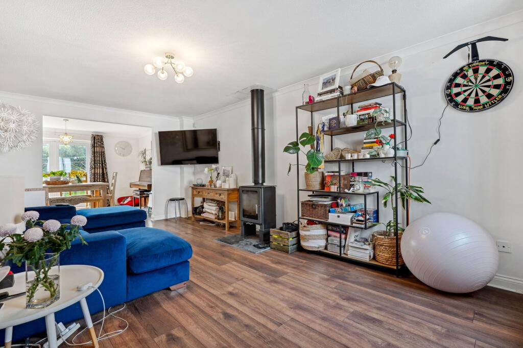 Spacious mid-terraced four bedroom family home benefitting from modern kitchen and bathroom, uPVC double glazed windows, wood burning stove, integral garage, parking and garden. EPC: D