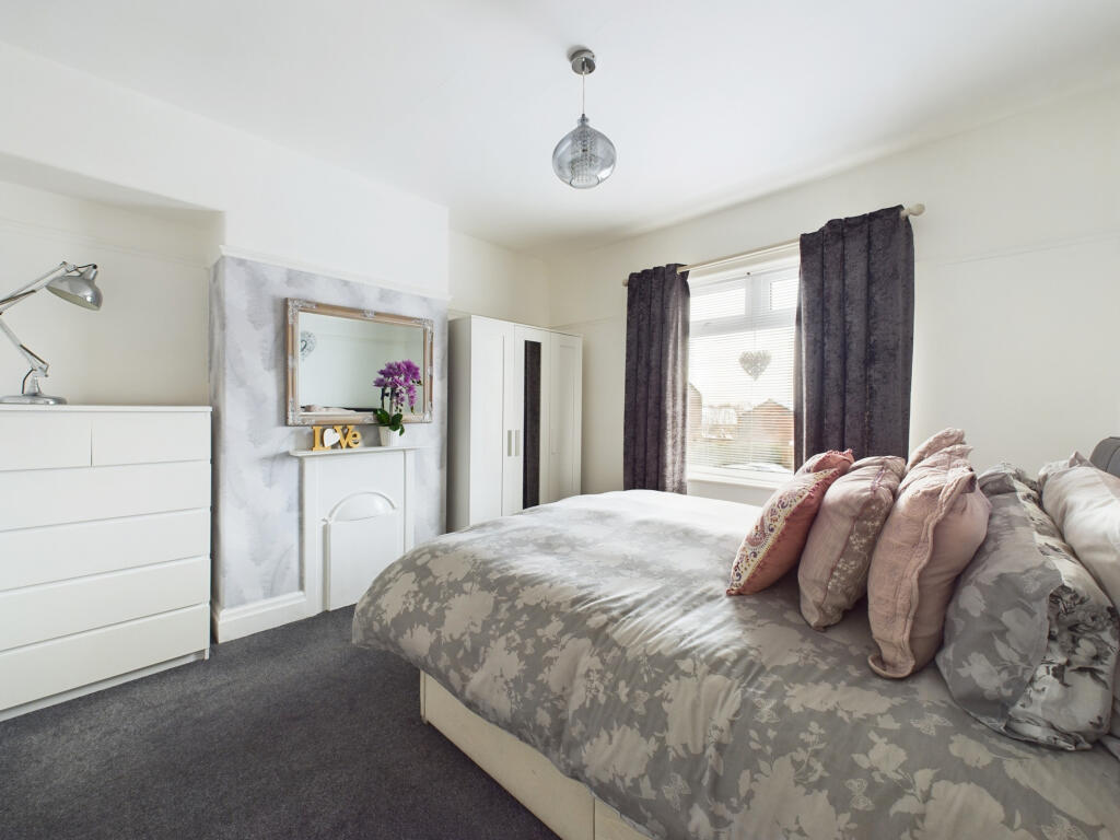 This three-bedroom semi-detached house on Ribby Road, Kirkham, is presented as a well-maintained family home. The property’s location offers convenient access to local amenities, including well-regarded primary schools, and is within reasonable proximity to Kirkham and Wesham train station for commuters. The interior photographs showcase a recently updated kitchen with modern green cabinetry and a tiled floor. The living spaces appear comfortable and bright, with a noticeable feature fireplace. The bedrooms are neatly presented, each with its own style and storage solutions. The property also features a modest garden and a brick-built shed, which provides additional storage. While the property appears to be well-kept and recently updated in parts, potential buyers should still conduct a full survey to ensure that everything is in perfect working order. The lack of precise plot size data prevents a precise comparison with other properties regarding value for money.