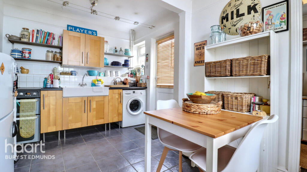 This end of terrace property is located in Bury St Edmunds, a popular market town in Suffolk. The location benefits from being within proximity to several schools, including Guildhall Feoffment Community Primary School and St Edmund’s Catholic Primary School, both rated ‘Good’ by Ofsted. The town also boasts good transport links, with Bury St Edmunds train station less than a kilometre away. The property itself appears to be in reasonable condition, though some modernisation may be desirable. The kitchen and bathroom show signs of updating, while other areas retain traditional features. The property includes a small, enclosed rear garden, which is a desirable feature for many buyers. Given the average house price in the area is £234,748 and the average price per square foot is £278, the asking price of £250,000 appears reasonable, particularly given the proximity to amenities and schools, although a lack of square footage data prevents a definitive conclusion on value for money. Nearby comparable properties range significantly in price, suggesting some variability in the market.