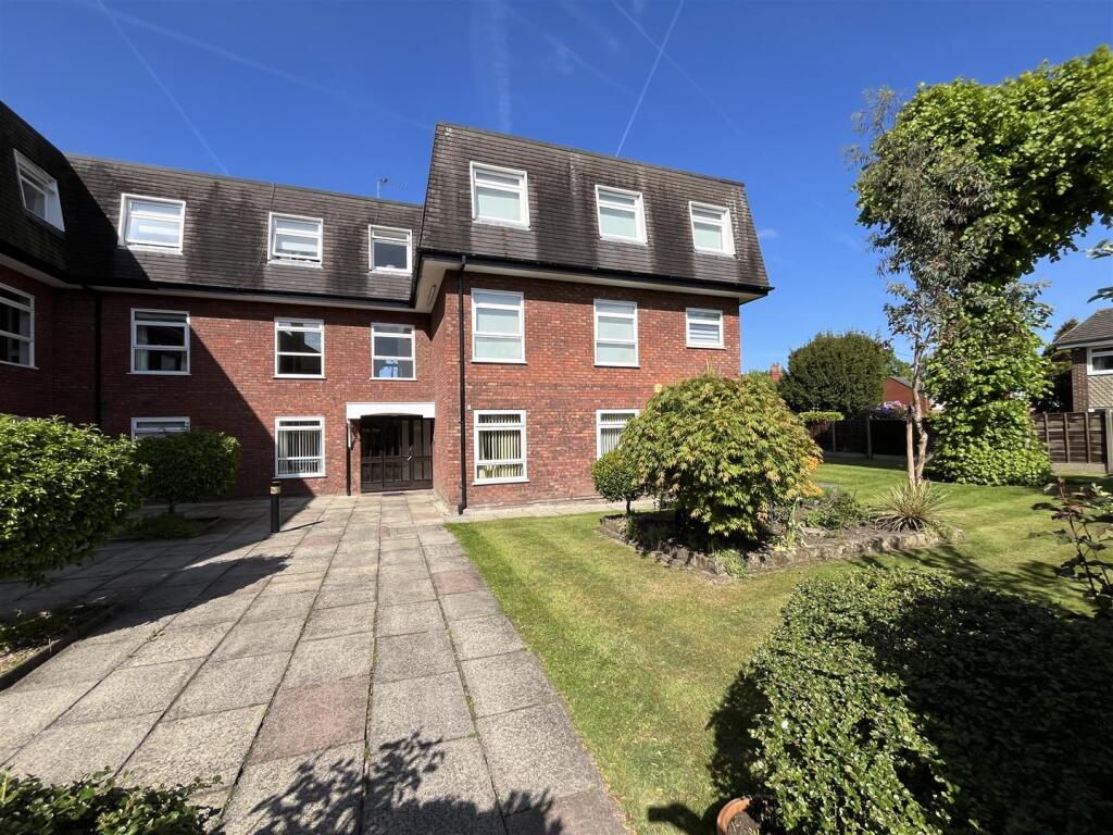 AN IMPRESSIVE, UPGRADED AND IMPROVED, THREE BEDROOMED FIRST FLOOR APARTMENT WHICH ENJOYS LOVELY VIEWS OVER BROOKLANDS SPORTS CLUB. IDEAL LOCATION ON THIS DESIRABLE CUL DE SAC. GARAGE INCLUDED. EXCELLENT ROOMS SIZES THROUGHOUT. IDEAL FOR TOWN CENTRE/METROLINK. Hall with storage cupboards...