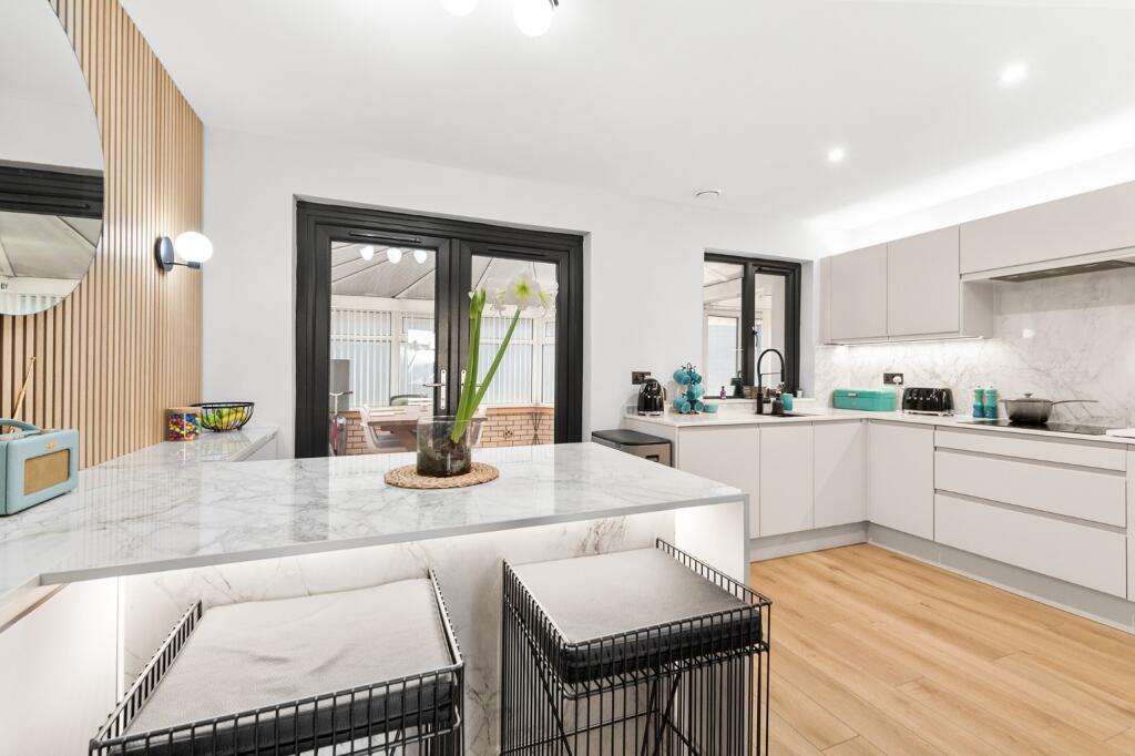 This 4-bedroom, 3-bathroom property located in Herd Green, Livingston North, West Lothian presents a compelling proposition for potential buyers. The property has clearly undergone a significant and stylish refurbishment. The modern kitchen is a standout feature, with high-quality appliances and a contemporary design. The bathrooms also reflect this high standard of renovation. The interior design is modern and appealing, with a thoughtful use of space and light. The property benefits from a relatively convenient location, with Livingston North train station within easy reach. While information on local amenities is limited, the proximity to other areas with higher average house prices suggests a desirable residential area. The property’s exterior is also well-maintained and presents a positive first impression. However, the property’s garden appears relatively small, and the lack of precise plot size data is a minor drawback. Overall, this property offers a well-presented and updated home in a convenient location, making it attractive to a range of buyers. Further information on school catchment areas and local amenities would provide a more comprehensive assessment.