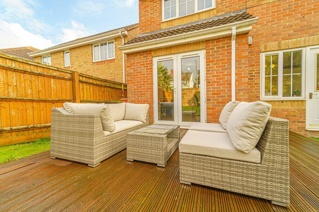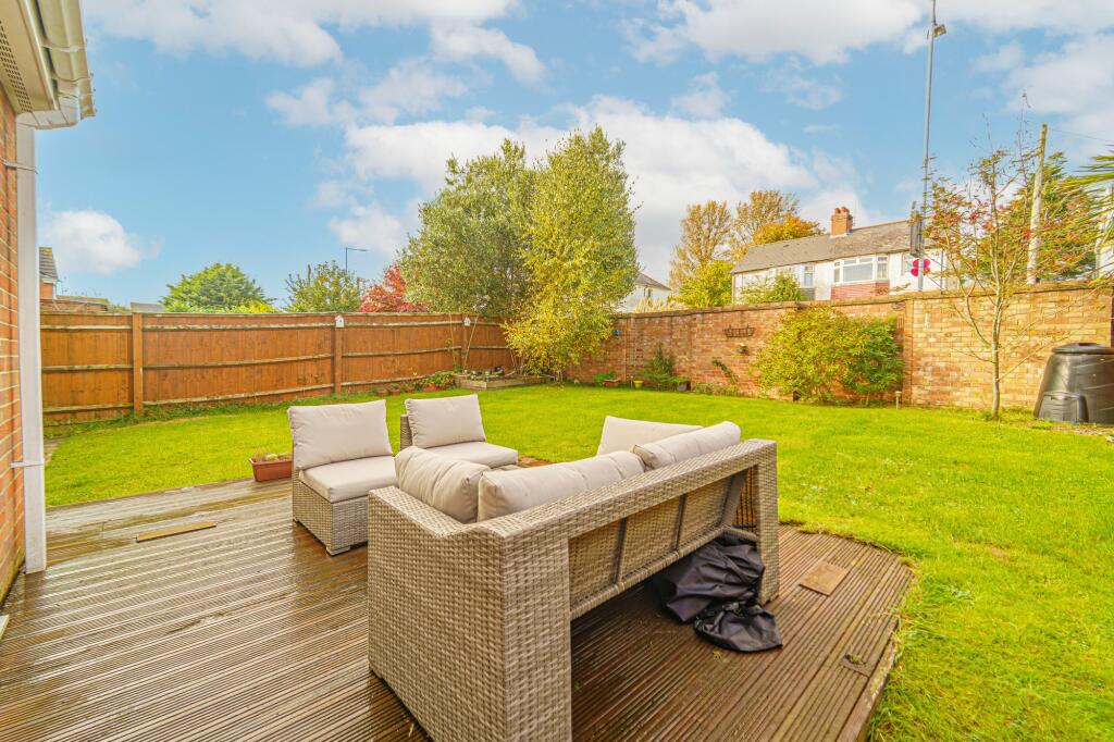 The listing emphasizes a large rear garden, which is also visible in the accompanying images, demonstrating its extent. The presence of this space adds significant value to the property, as gardens of this size are comparatively rare in this type of development.