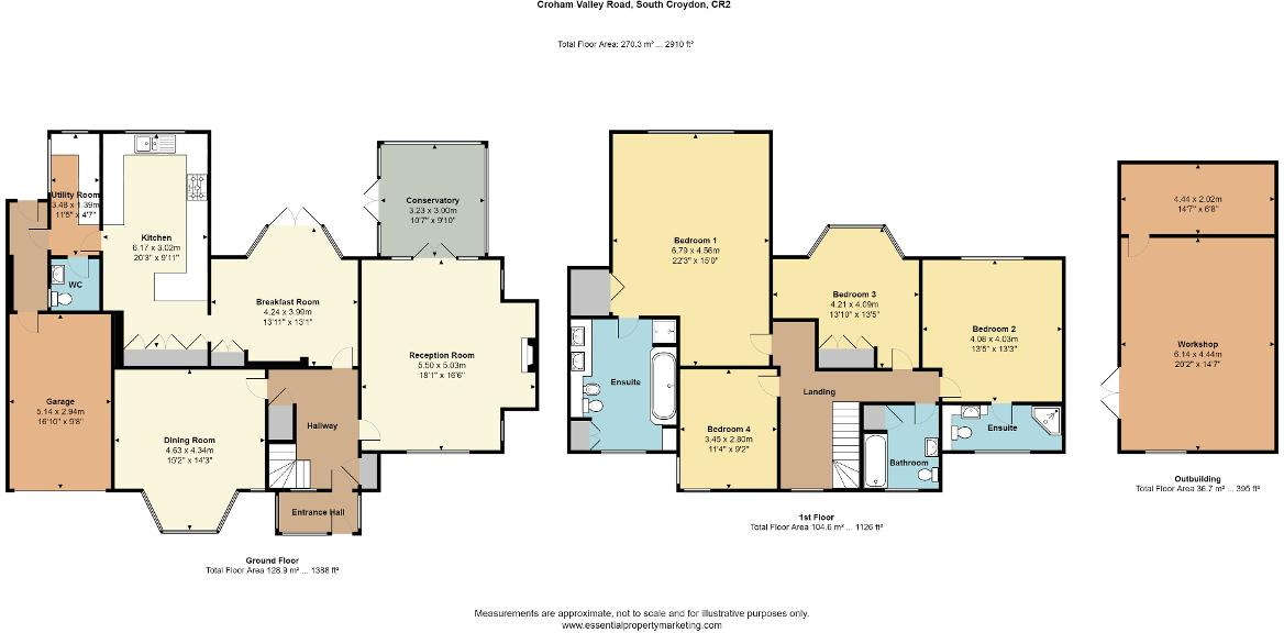 Croham Valley Road is located in South Croydon, a suburb of London. The property is a four-bedroom detached house with a significant plot size of 2,909.49 sqft. Based on the photos, the property appears to be well-maintained and in good condition, with modern amenities and a spacious layout. The large garden is a desirable feature, offering ample outdoor space.