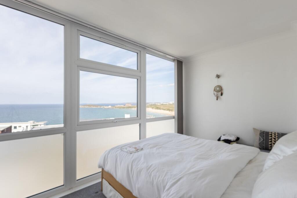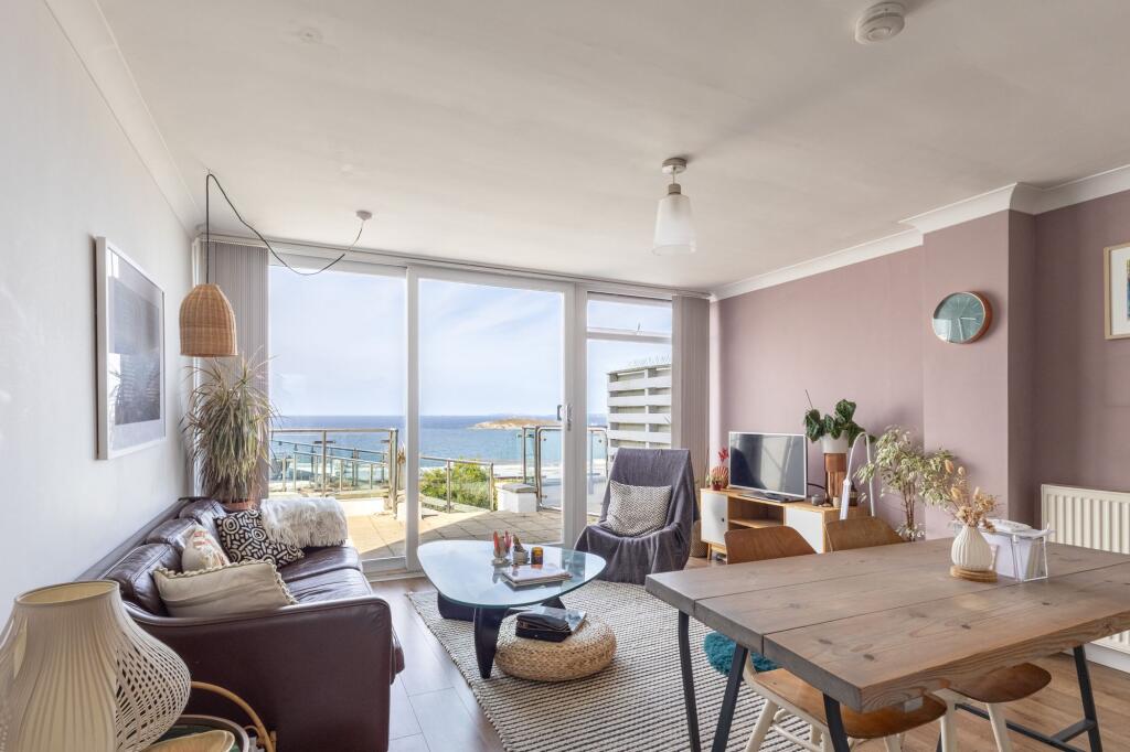TWO BEDROOM COASTAL HOME IN PENTIRE WITH PRIVATE BALCONY, BASEMENT ROOM AND STUNNING SEA VIEWS – AVAILABLE FOR LONG TERM LET WITH GAS CENTRAL HEATING.Available for long-term occupation, this two-bedroom home is set in the highly sought-after Pentire area, enjoying uninterrupted views across Fistr...