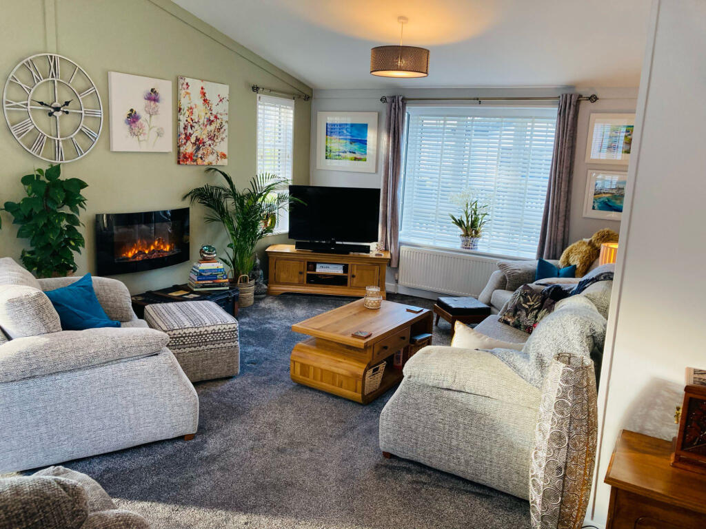 This property is a 2 bedroom, 2 bathroom park home located in Blairgowrie, Perthshire. The home is in excellent condition and appears to be newly built or recently renovated. It benefits from a modern kitchen and bathrooms, and has a spacious living area. There is a good sized garden with raised flower beds and a patio area with views over a lake. The property is well-maintained and presented to a high standard. While the plot size is small, the surrounding area offers beautiful scenery and access to outdoor activities. The price is slightly below the average for the area, but comparable to other park homes in the vicinity. The lack of nearby schools and transportation information prevents a full assessment of the location score.