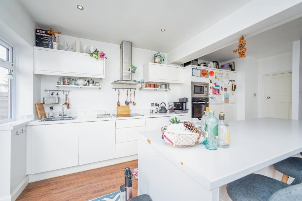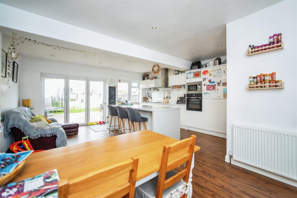 1930's semi with wonderful open plan extension. Ideal for those family get togethers with bi-folding doors leading to the garden and double garage. Easy walk to Rainham Station and High Street.