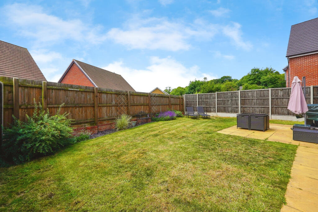 This modern detached home, built in 2019, sits on the edge of town beside the Godinton Park estate. It offers a spacious, well-planned layout in a quiet setting with nearby parks, shops, and good transport connections