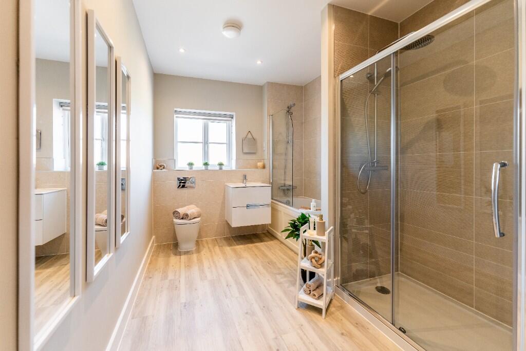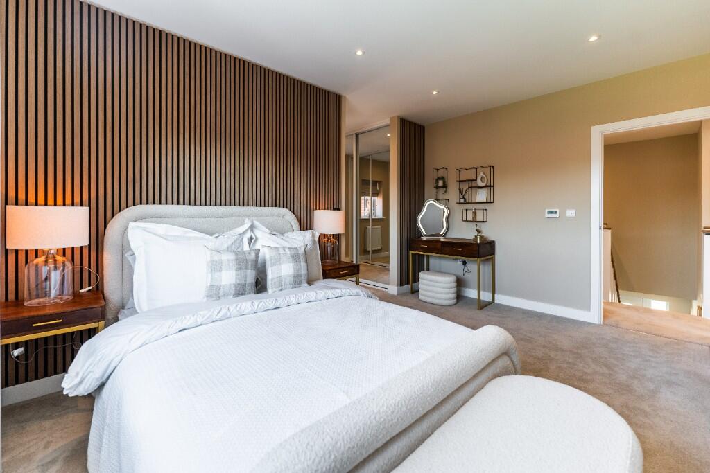 A five bedroom detached family home with double garage. The heart of the home is the open plan kitchen/dining area including a breakfast island and bi-folding doors opening to the spacious rear garden. Double doors lead through to the generous dual-aspect living room with feature fireplace.
