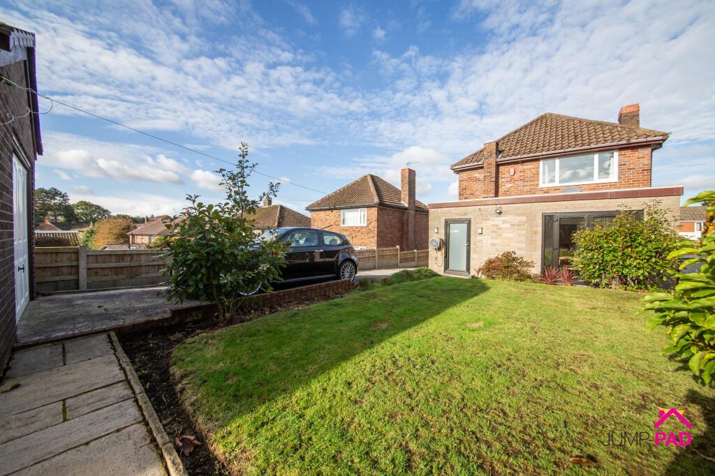 Extensively renovated 3-bed detached house. Boasting an open-plan kitchen/dining room, spacious living room, separate utility, downstairs WC, good-sized bedrooms, bathroom, garage, generous garden.