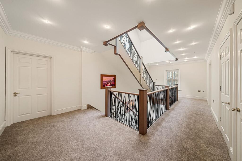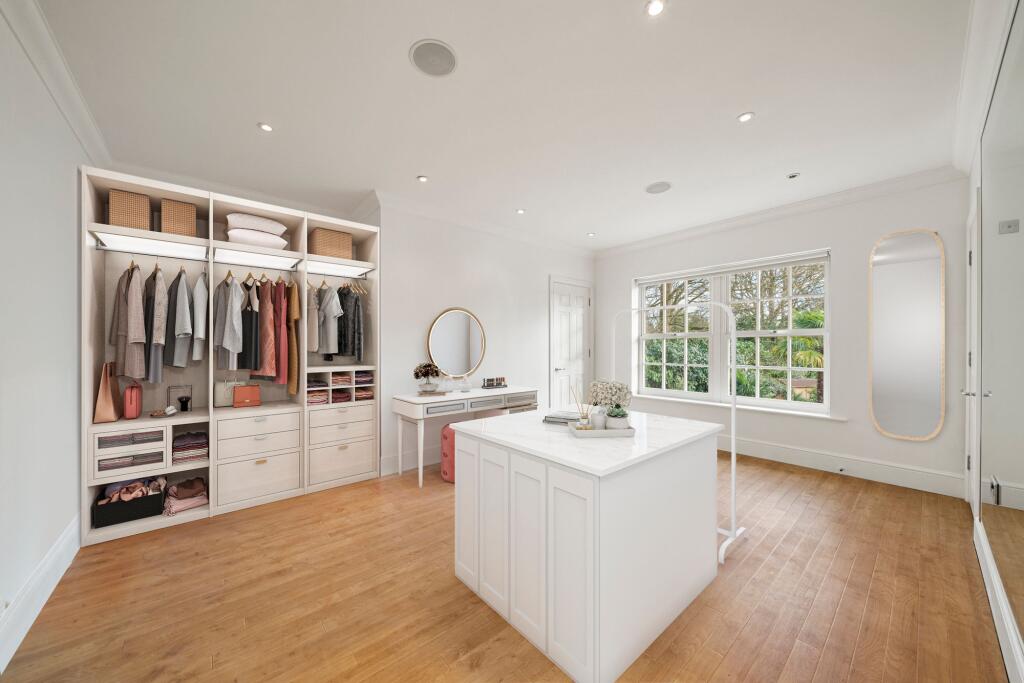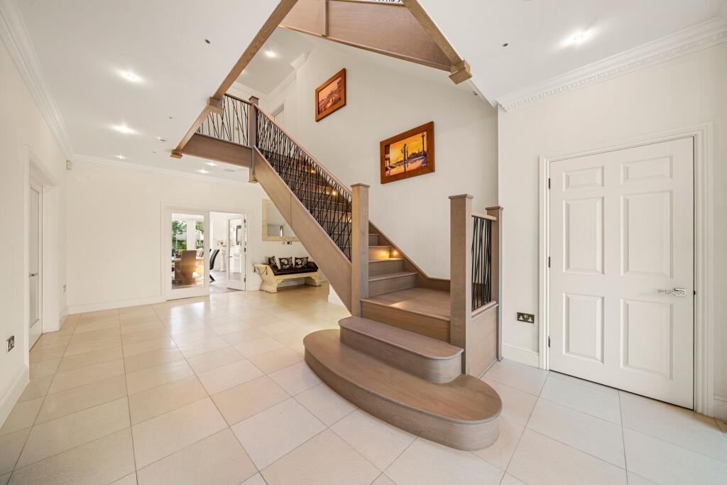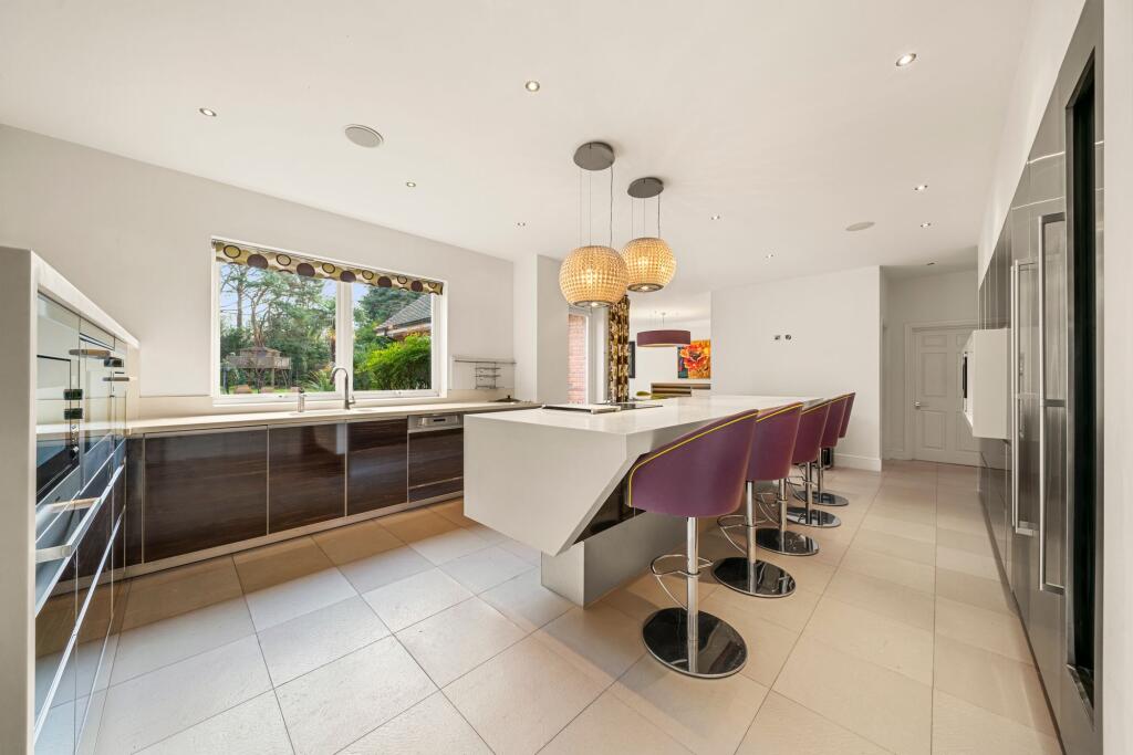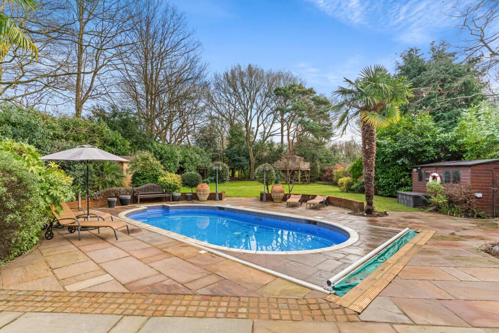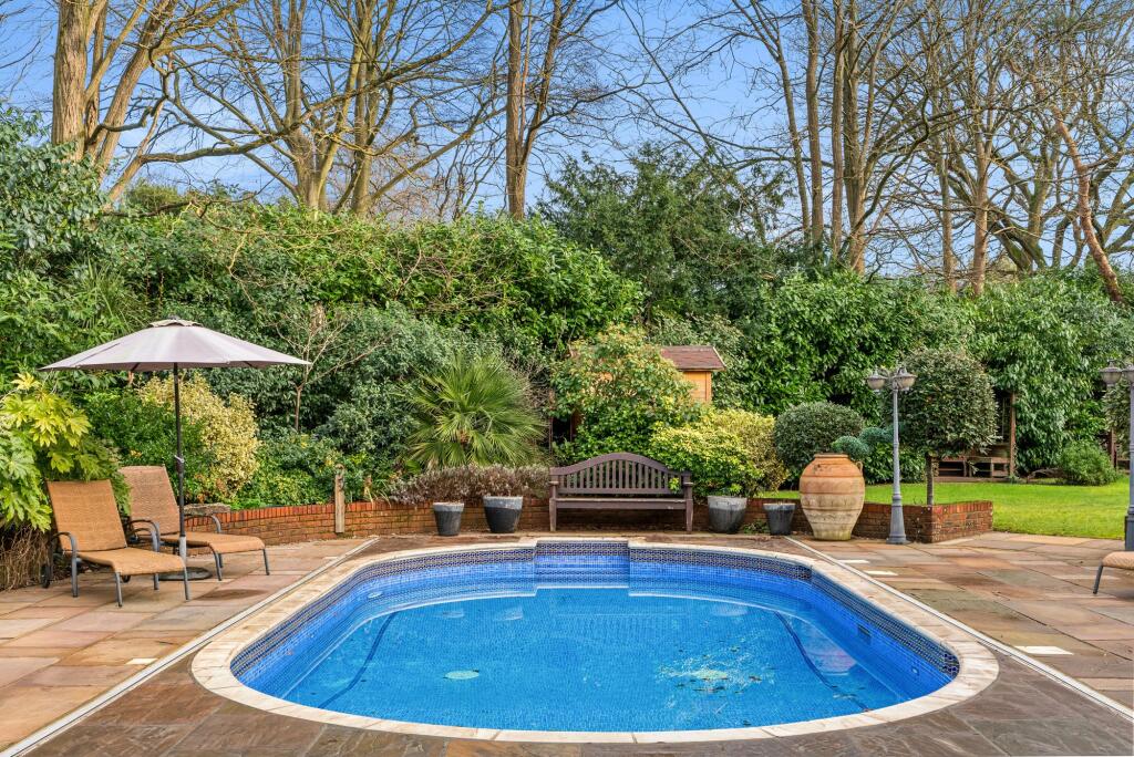 This seven-bedroom, five-bathroom property located on The Barton in Cobham, Surrey presents itself as a substantial family home. The property’s modern aesthetic, shown in the interior images, is reflected in its well-maintained brick exterior and generous garden. The photos suggest high-quality fixtures and finishes, particularly the kitchen and bathrooms. The expansive garden includes a swimming pool, multiple seating areas, mature trees, and additional structures such as a treehouse and shed, offering a considerable amount of outdoor living space. The location in Cobham is undoubtedly a significant advantage, providing access to top-rated schools and convenient links to transport. The absence of plot size data in the listing prevents a precise assessment of the price per square foot and makes a more definite conclusion on overall value more difficult. However, considering other local listings and the property’s features, the list price seems to fall within the expectations for comparable properties in this affluent and sought-after area. Buyers should expect to see high demand and a potentially competitive bidding process if this property is placed on the open market.