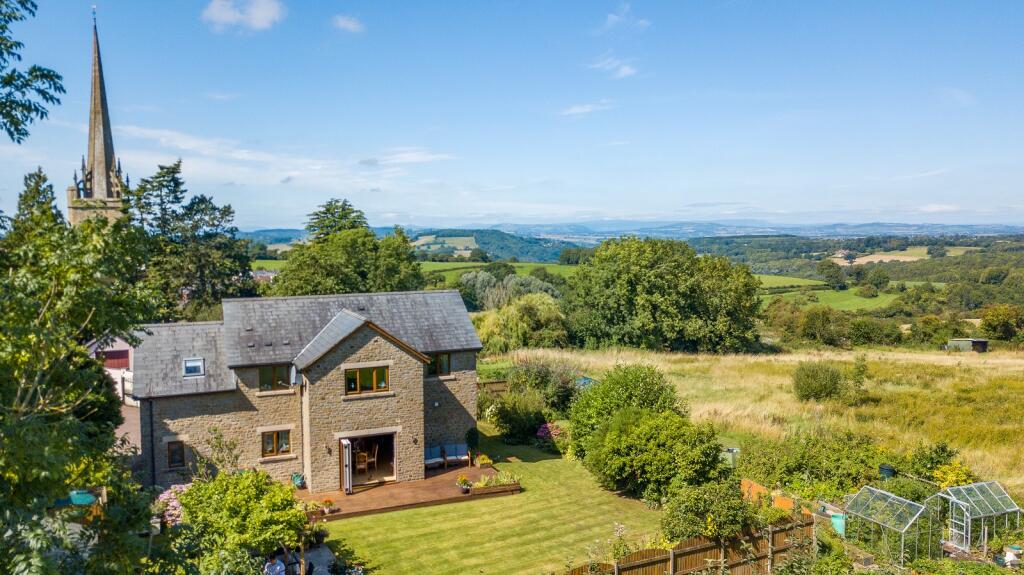 A unique architecturally designed family home in a peaceful private village position. 4 acres of ground including formal garden, orchard and tree lined meadow, outstanding views over surrounding countryside . Very spacious, flexible accommodation, light airy open plan living, dining, kitchen, 4/5...