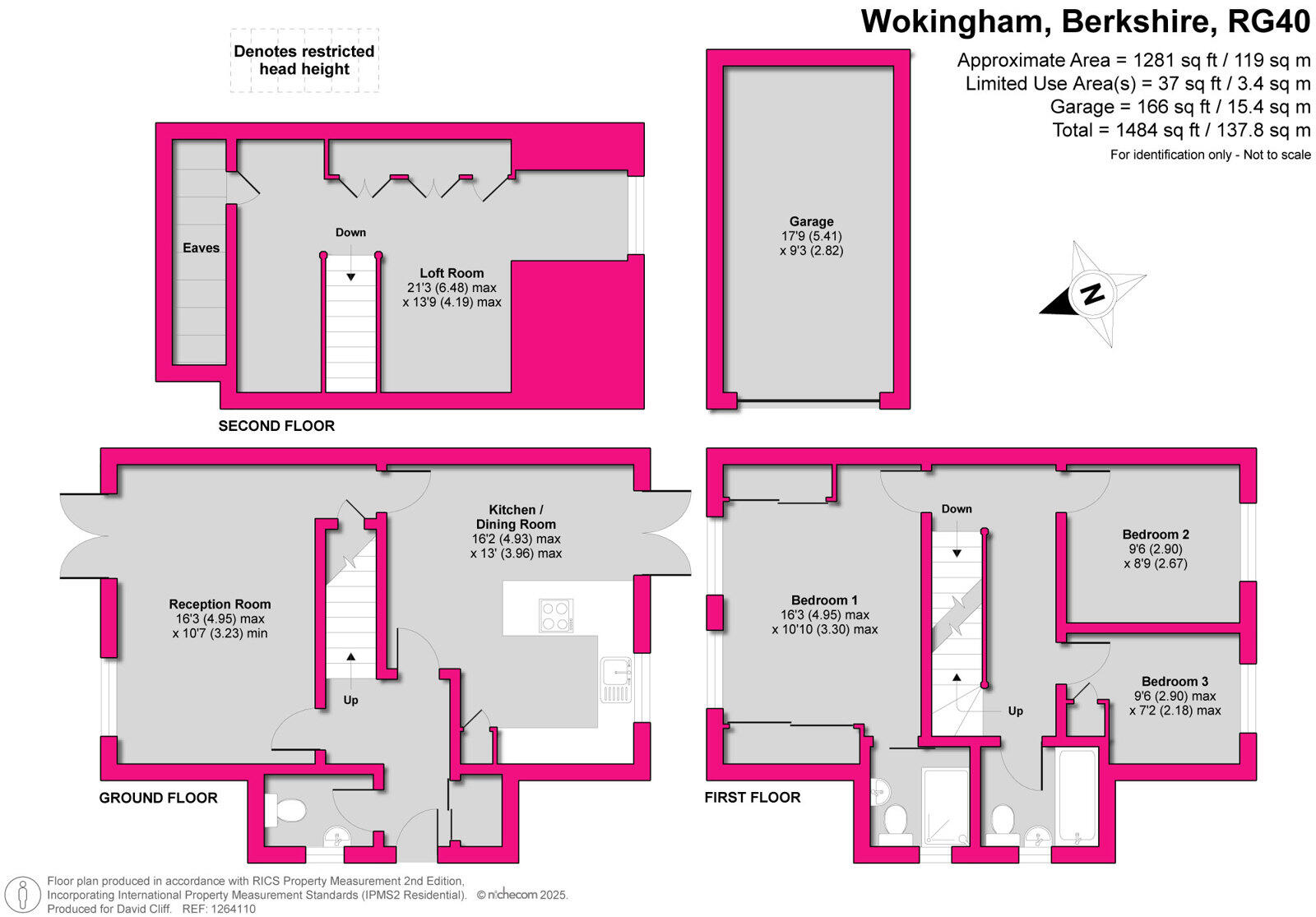 The property is located in Heathlands Court, Wokingham, Berkshire. It’s an end of terrace house with 3 bedrooms and 2 bathrooms, spanning 1,149 sqft on a 1,484 sqft plot. The list price is £550,000.