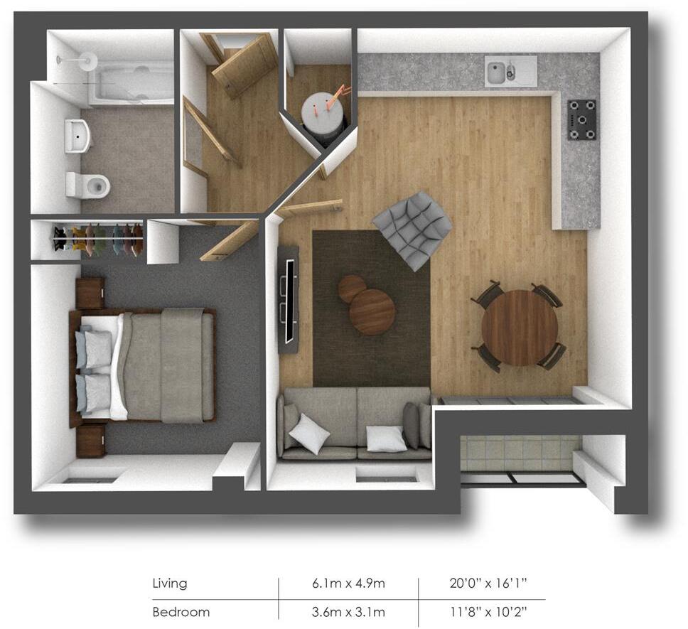 PURE RESi are delighted to offer this modern one double bedroom apartment, located on the second floor. The wide hallway leads into am open-plan kitchen, dining and living area – with the added benefit of a private balcony. The contemporary kitchen is finished with laminate worktops and comes fu...