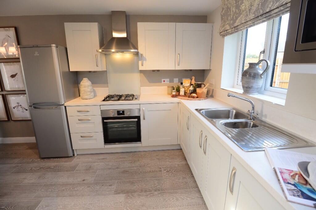 3-bedroom detached ENERGY-EFFICIENT home complete with a lounge to an open plan kitchen and dining space with French doors providing a link to the garden. Upstairs, the large master bedroom benefits from a fitted wardrobe and a beautiful ensuite. Completed with a single garage and driveway.