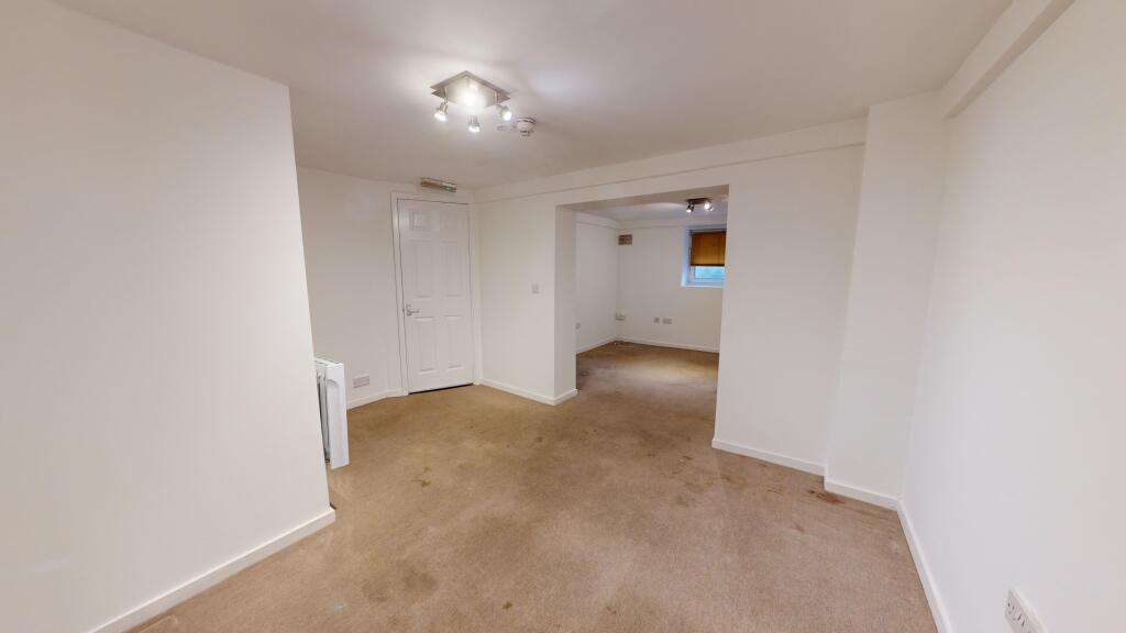 An open plan one bedroom property with walk in shower. A good sized living space with kitchen facility, separated by an archway which leads in to the bedroom. This is a part furnished property with bed, built in wardrobes, sofa and storage unit.